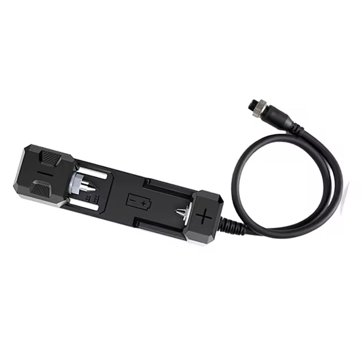 Аксесуар до HRM-10 Затискач Кельвіна (18650 - 26650) затискач-контейнер для вимірювання внутр.опору батарей Затискач Кельвіна (18650 - 26650) підходить до таких типів акумуляторів: AAA, AA, 14500, 18650, 26650, 32650, 21700 та всім іншим, довжина яких становить від 14 мм до 70 мм. Обидва контакти підпружинені. Контакт "мінус" може переміщатися за довжиною приладу та фіксується двома фіксаторами в нижній частині тримача. Характеристики: