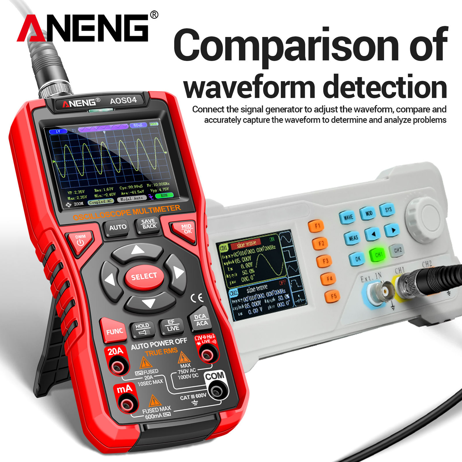 Aneng AOS04, цифровий мультиметр / портативний осцилограф 10 МГц, 750V AC/ 1000V DC Voltage, 20A AC/DC Current, NCV, Smart, літієвий акумулятор