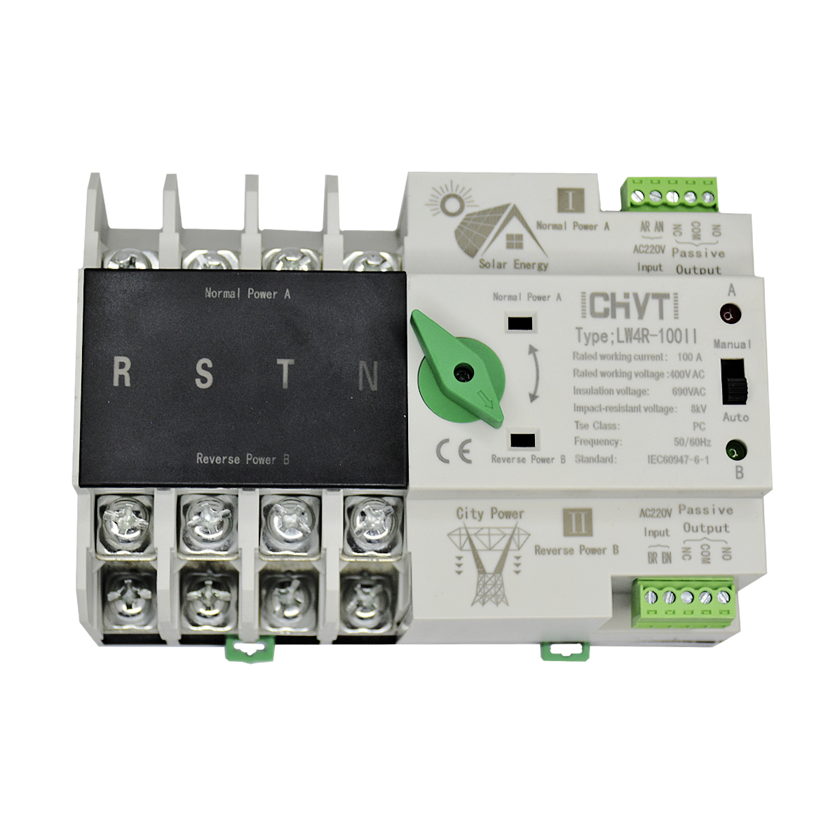 Автоматичний перемикач джерела живлення LW4R-100 4 полюси 100А SUN/GRID CHYT