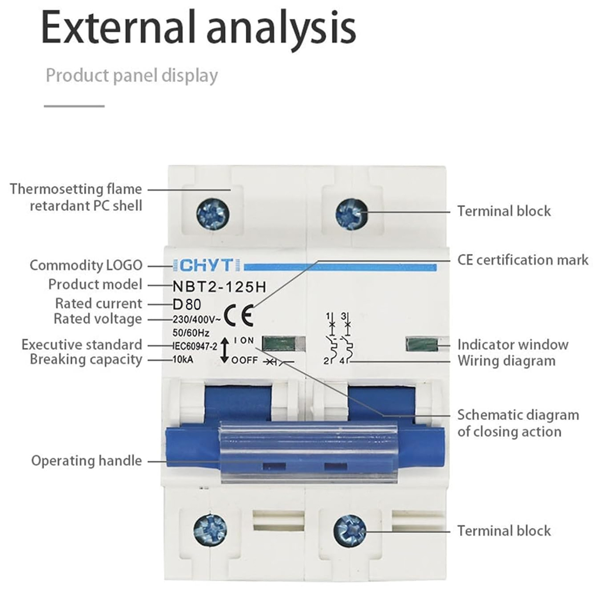 Автоматичний вимикач 2 полюси 80А DIN рейка CHYT NBT1-63
