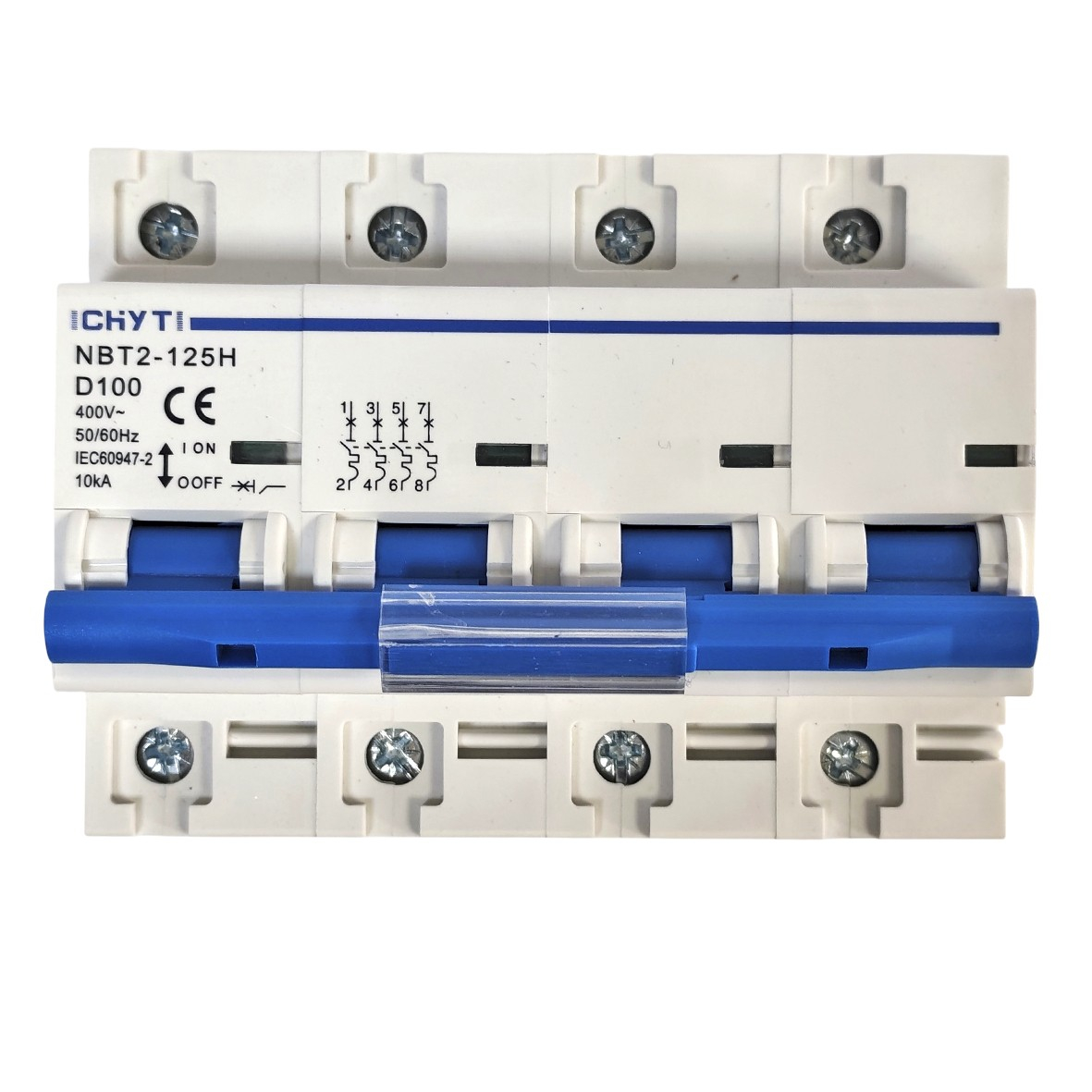 Автоматичний вимикач 4полюси 100А DIN рейка CHYT NBT2-125H
