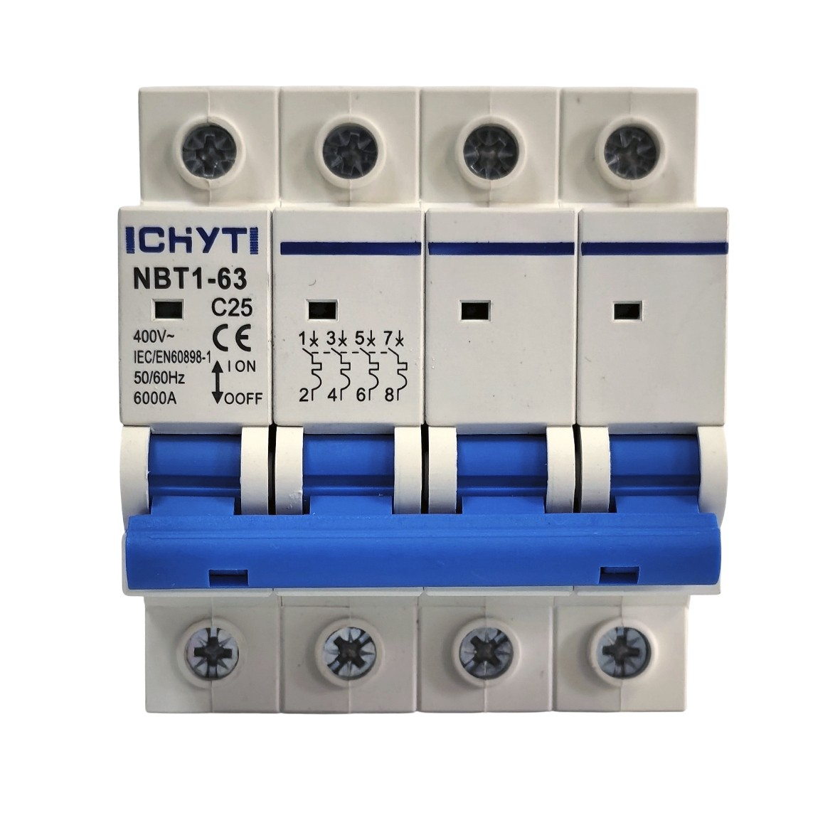 Автоматичний вимикач 4полюси 25А DIN рейка CHYT NBT1-63