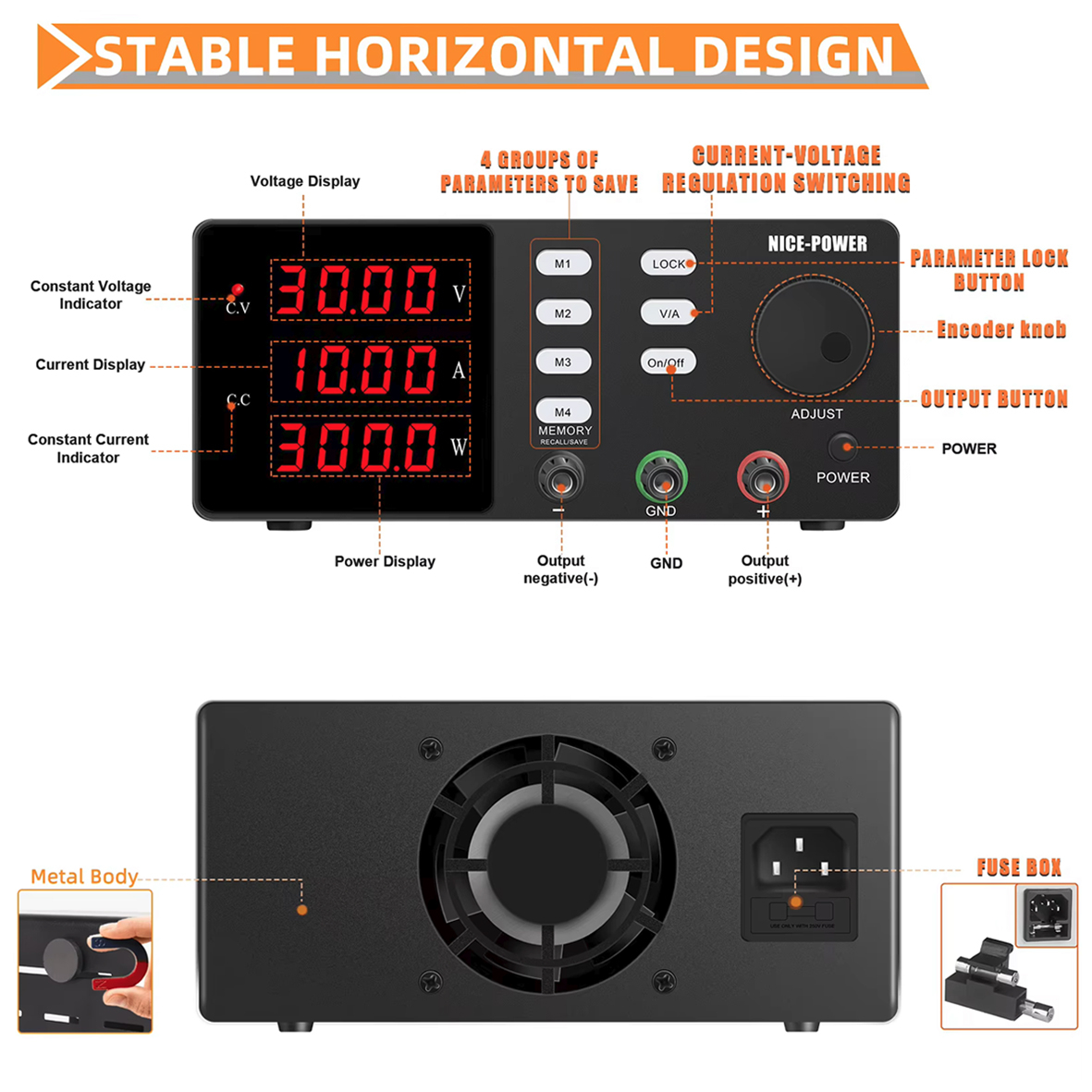 Блок живлення лабораторний SPPS-S3010 300Ватт (0-30Вольт х 0-10Ампер)