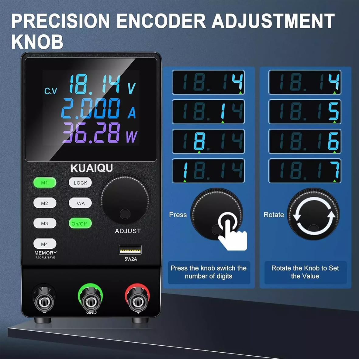 - Регулювання ручкою-енкодером для точності і зручності