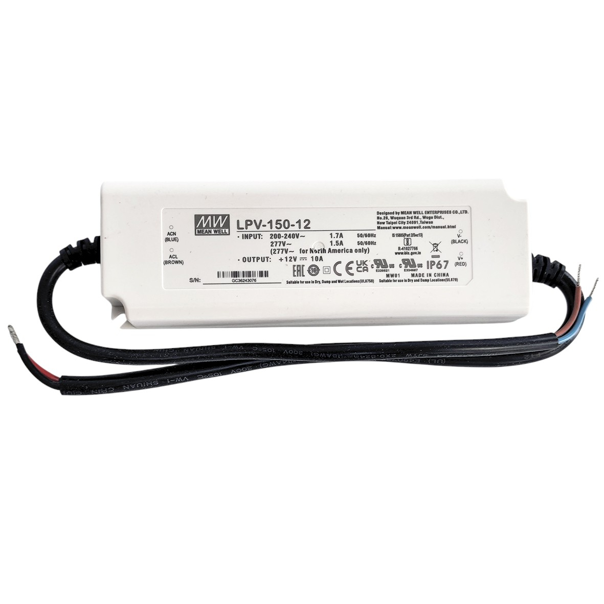 Mean Well LPV-150-12 — це високоякісний імпульсний блок живлення потужністю 150 Вт з вихідною напругою 12 V DC, призначений для надійного живлення світлодіодних стрічок, освітлювальних систем та іншого низьковольтного обладнання. Завдяки герметичному корпусу з класом захисту IP67, пристрій ідеально підходить як для внутрішнього, так і для зовнішнього використання — навіть у вологих або запилених середовищах. Основні характеристики: