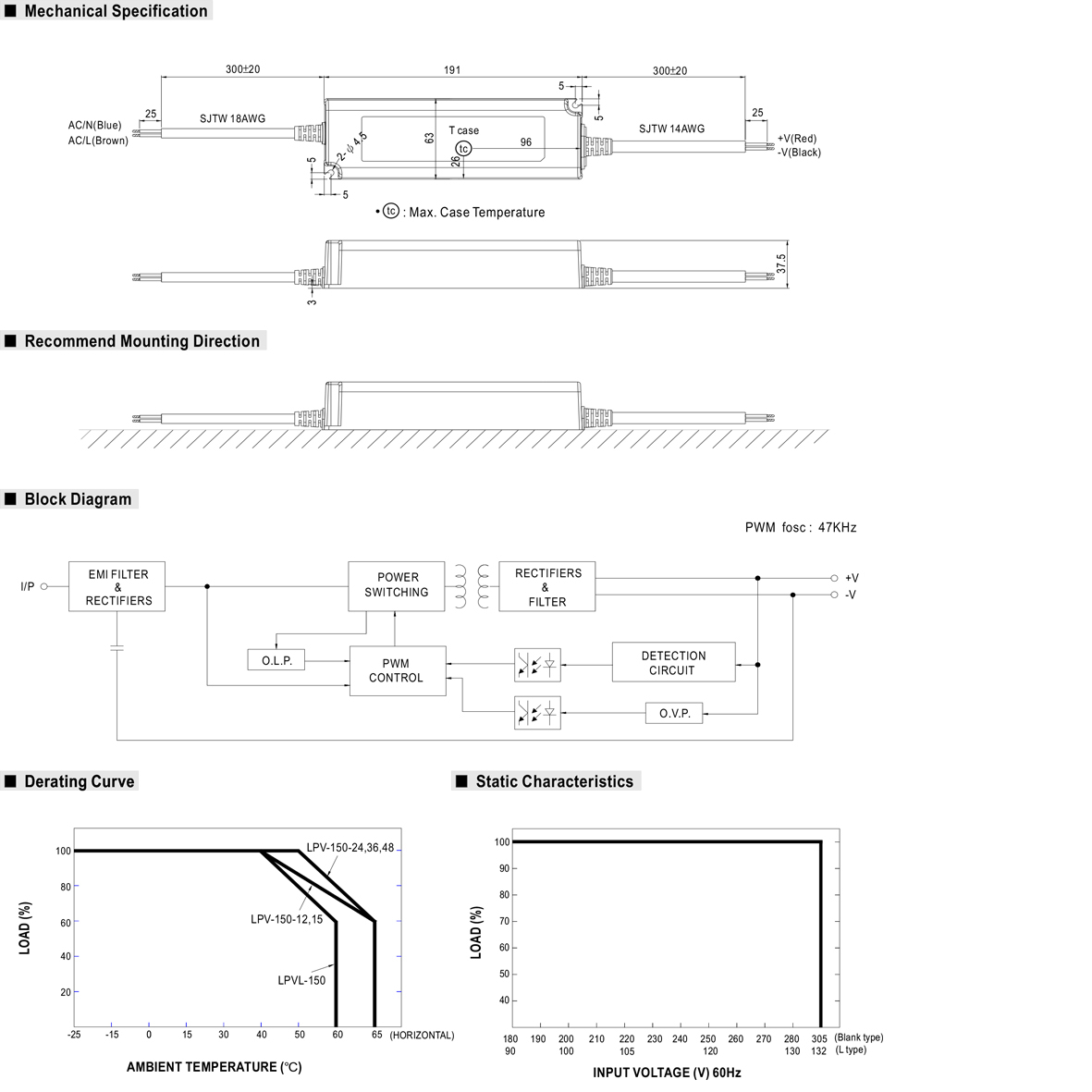 - Час утримання (Hold‑up time): ~18 ms (при 230 VAC)
