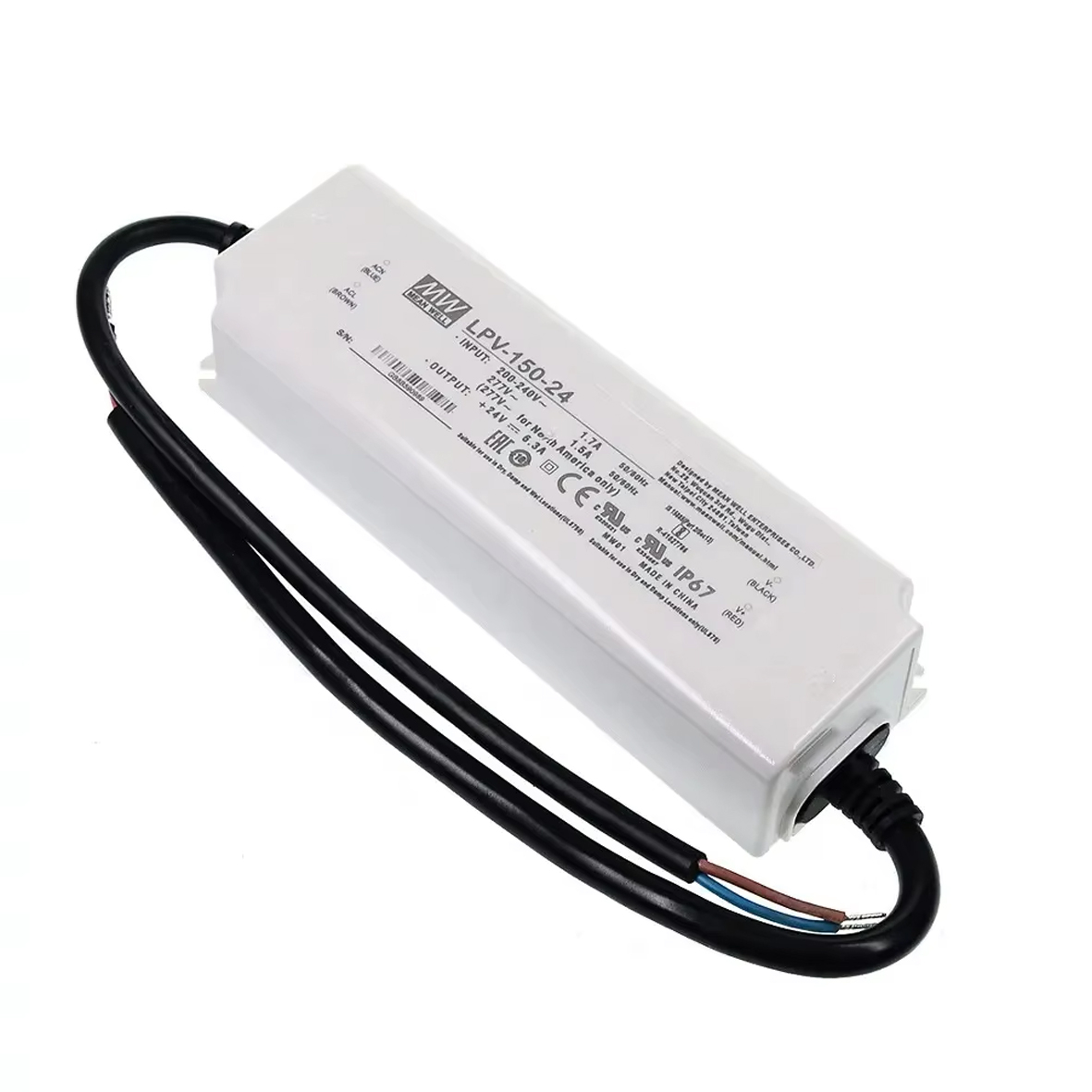 Mean Well LPV-150-24 — це високоякісний імпульсний блок живлення потужністю 150 Вт з вихідною напругою 24 V DC, призначений для надійного живлення світлодіодних стрічок, освітлювальних систем та іншого низьковольтного обладнання. Завдяки герметичному корпусу з класом захисту IP67, пристрій ідеально підходить як для внутрішнього, так і для зовнішнього використання — навіть у вологих або запилених середовищах. Основні характеристики: