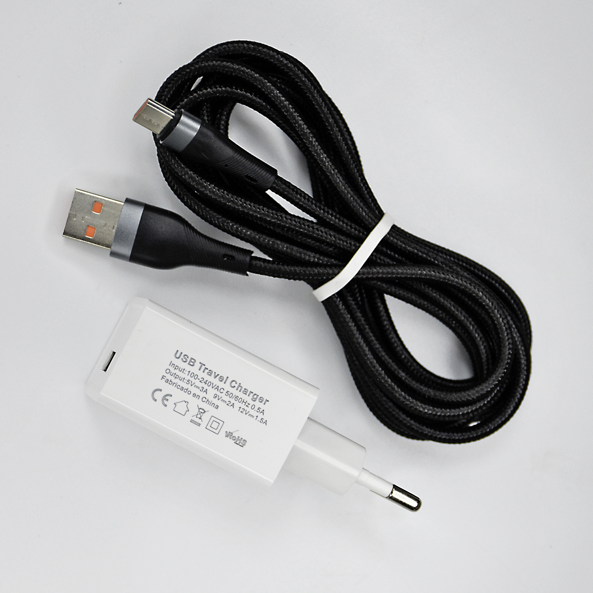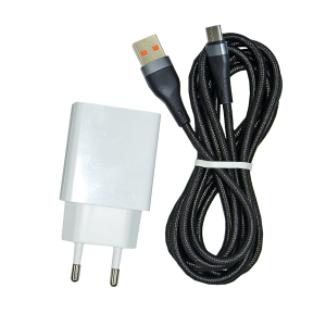 Продається комплект, що складається з надійного зарядного пристрою з підтримкою швидкого заряджання за стандартом QC3.0 та кабелю USB type C довжиною 2 метри. Зарядний пристрій забезпечує стабільну роботу та швидке заряджання сумісних смартфонів, планшетів, навушників та інших пристроїв. У комплект входить кабель заряджання та синхронізації з конектором USB type C. Завдяки нейлоновому обплетенню, TPE-шару та оболонці з алюмінієвого сплаву кабель має підвищену міцність і стійкість до згинань, розривів і механічних пошкоджень. Підходить для щоденного використання вдома, в офісі або в дорозі. Комплект сумісний з більшістю сучасних пристроїв та забезпечує комфортне та швидке заряджання без втрати якості. Технічні характеристики блоку живлення та кабелю :