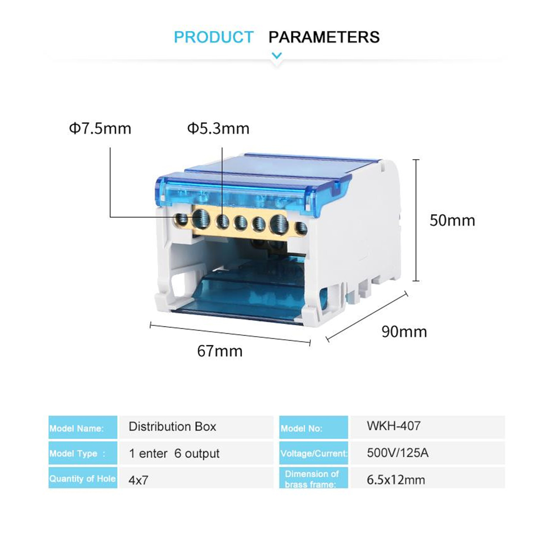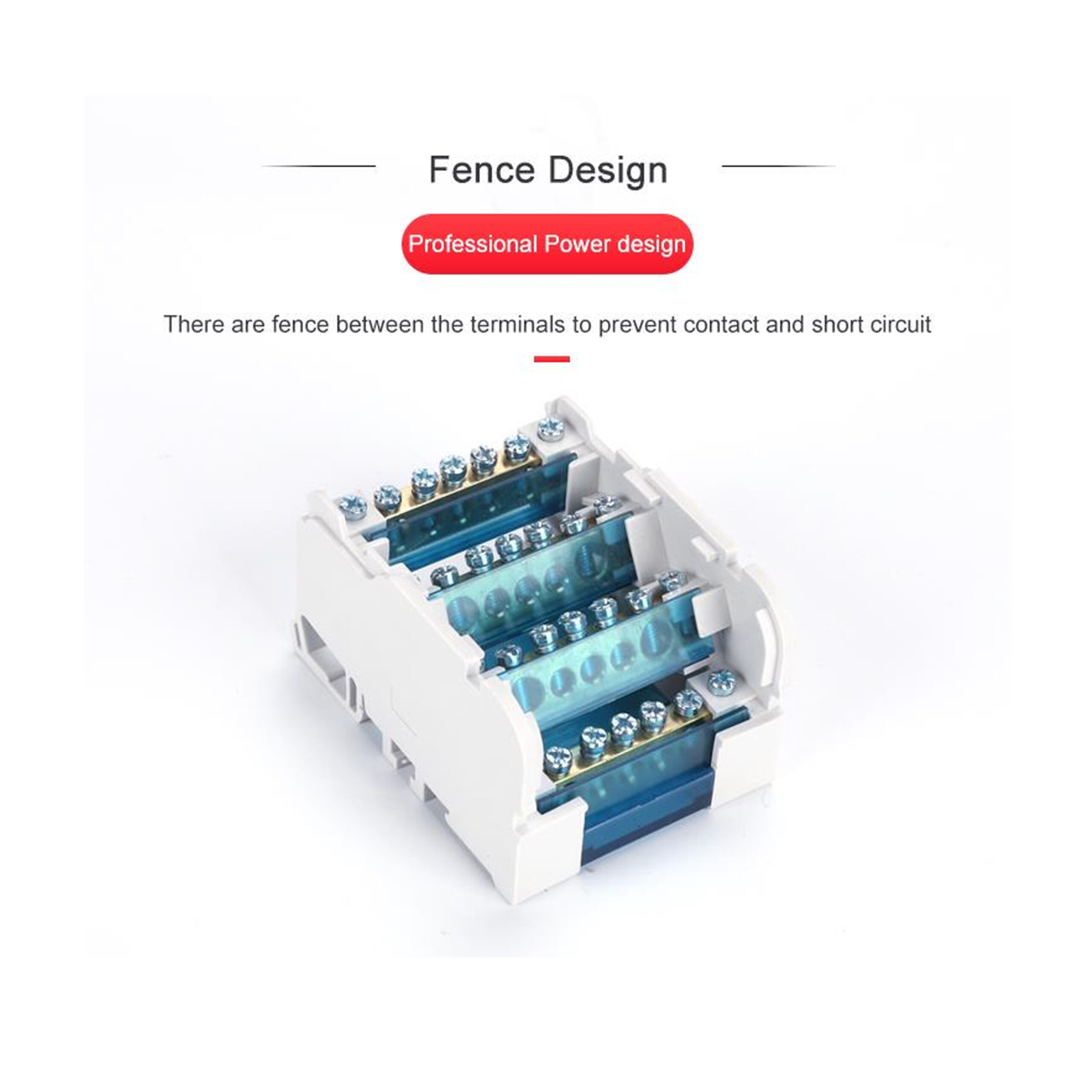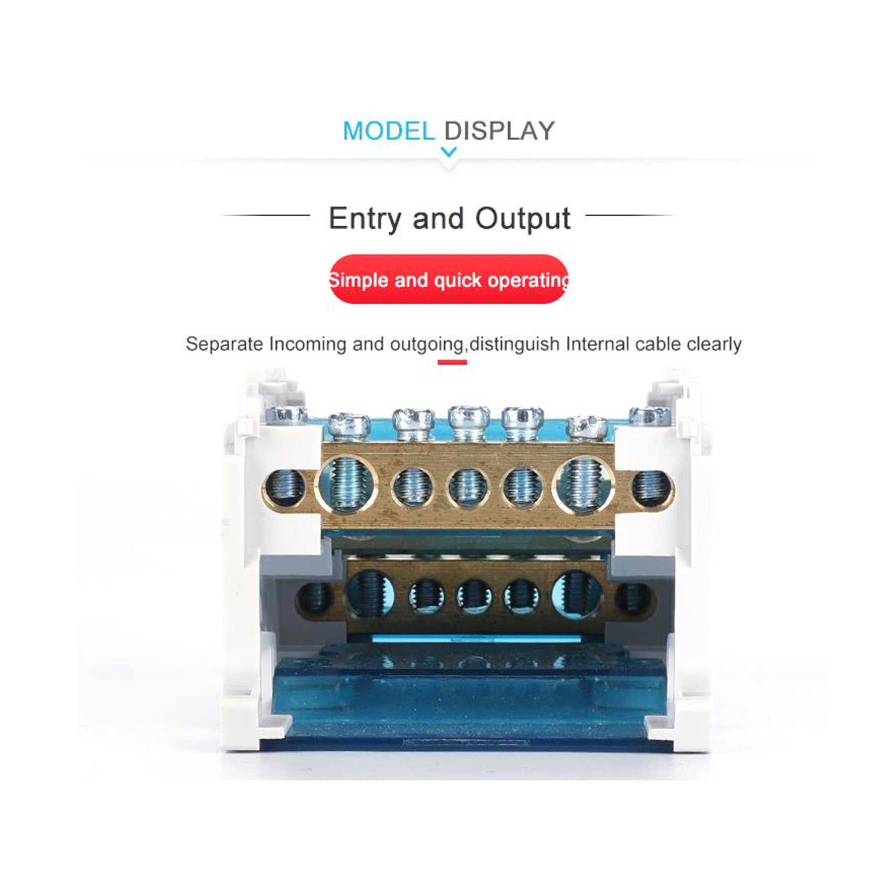 Призначені для приєднання декількох окремих ланцюгів, електропроводки. Шини між собою ізольовані. Використовуються як в низьковольтних, так і високовольтних установках; в розподільних пристроях електричних підстанцій. На шинах отвори різного діаметру для можливості використання проводів різного перерізу. Завдяки міцному корпусу можливо зовнішнє використання. Спосіб кріплення: за допомогою кріплення на din-рейку з профілем 35 7,5 мм; за допомогою отворів в підставі