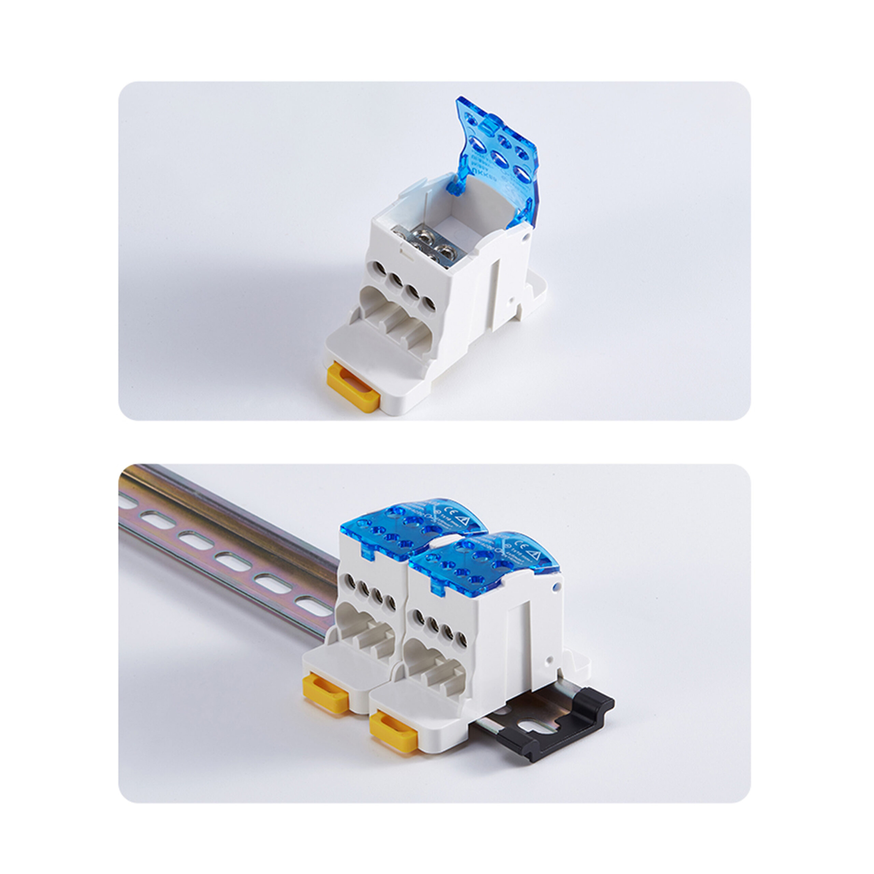 Блоки розподільні на DIN-рейку потрібні для того, щоб зручніше розподілити електроживлення в щиті. Призначені для створення впорядкованих систем розподілення в електрощитах, для структурованого підключення ліній, що відходять. Дозволяють з’єднувати один провідник великого перетину з одним або декількома провідниками меншого перетину. Спосіб кріплення: за допомогою кріплення на din-рейку з профілем 35 7,5 мм; за допомогою отворів в підставі.