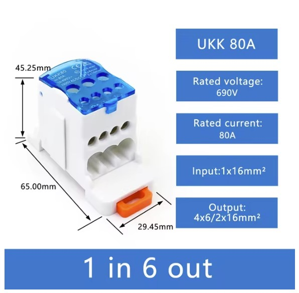 | UKK80 | 80 | 690 | IP 20 | 1х (2,5-16) | 4х(2,5-6) 2х(2,5-16) | 69х46х29 |