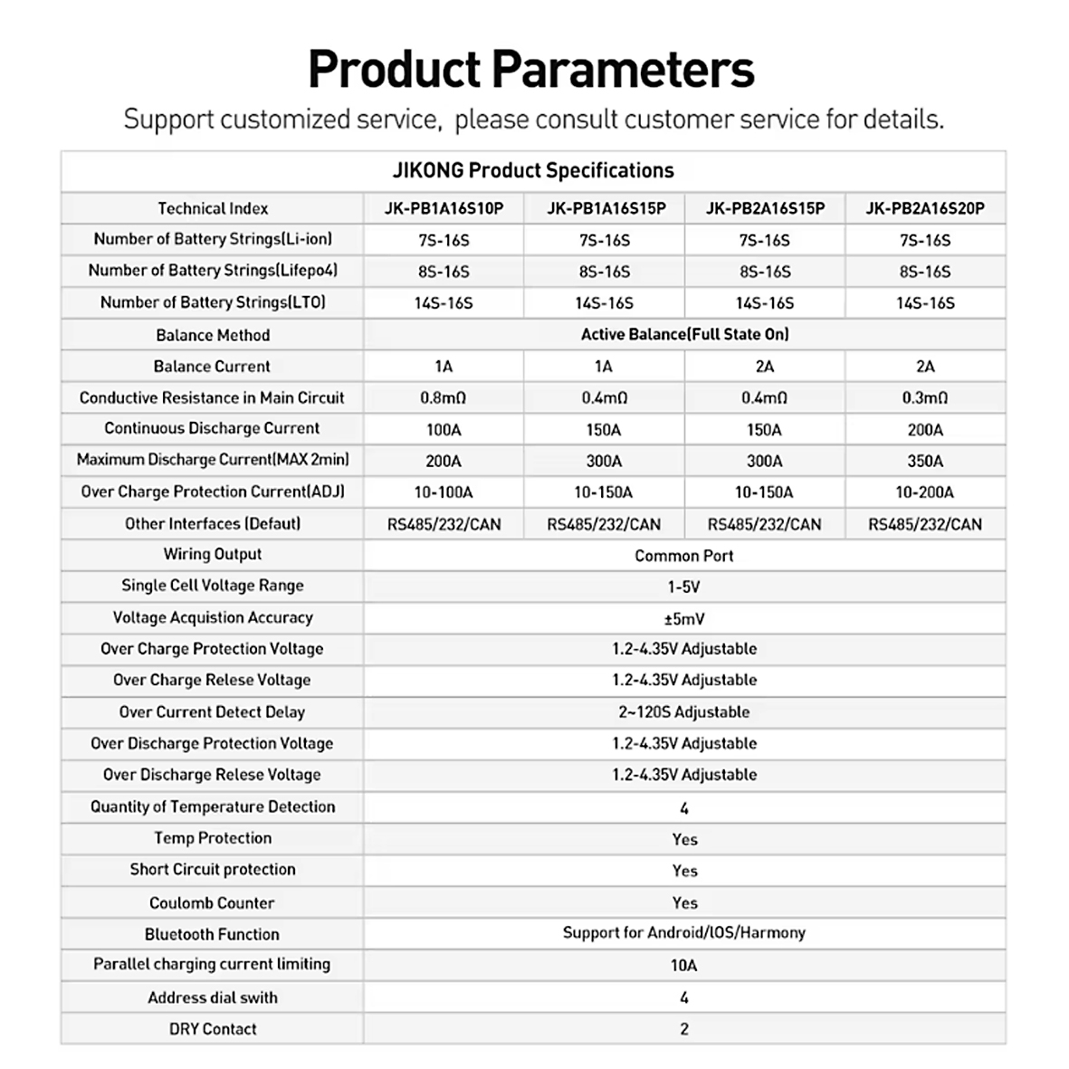 Дозволяє підключити паралельно до 16 батарей з JiKong BMS JK PB1A16S10P 100A шляхом з'єднання через порти RS485, має функцію балансування кожної батареї струмом 10А в цьому режимі;