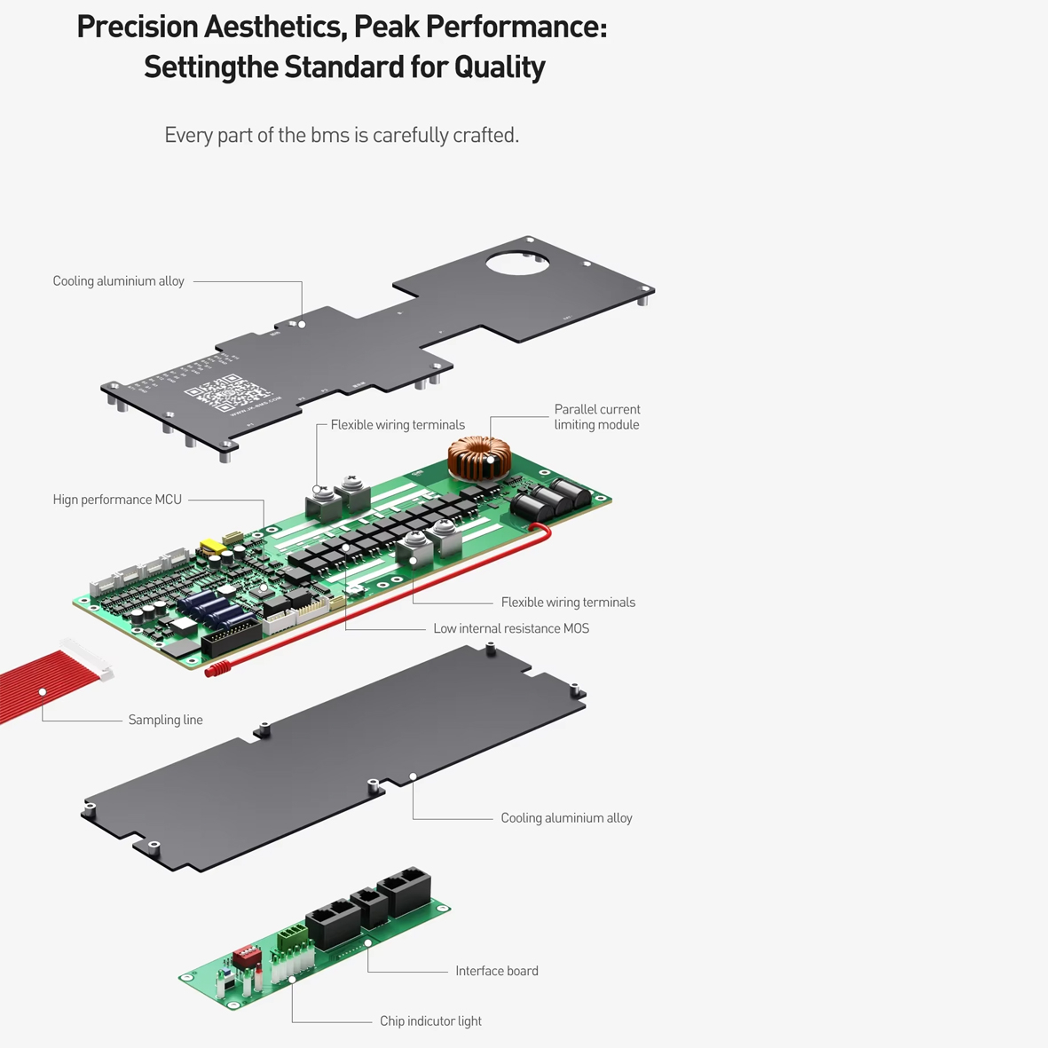 Покращені функції захисту від перезаряду, надмірного розряду, перевантаження, контроль температури та стабільності функціонування збірки; Переваги БМС: