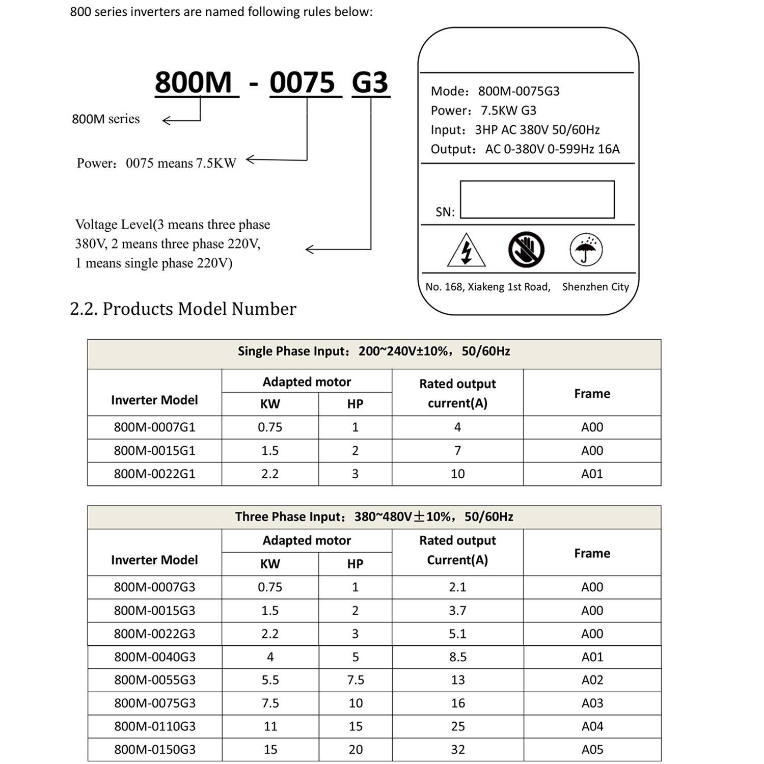 Рекомендації щодо підключення: для даної моделі (380 В, 2,2 кВт) рекомендується використовувати автоматичний вимикач на 16 А, контактор на 10 А, а також силові кабелі перетином 2,5 мм²