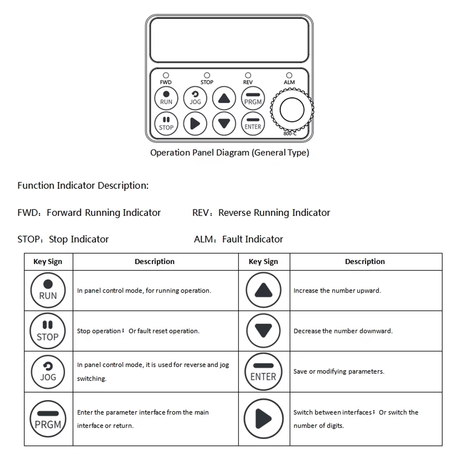 - Методи керування: векторне керування без датчиків (SVC) та вольт-частотне керування (V/F)
