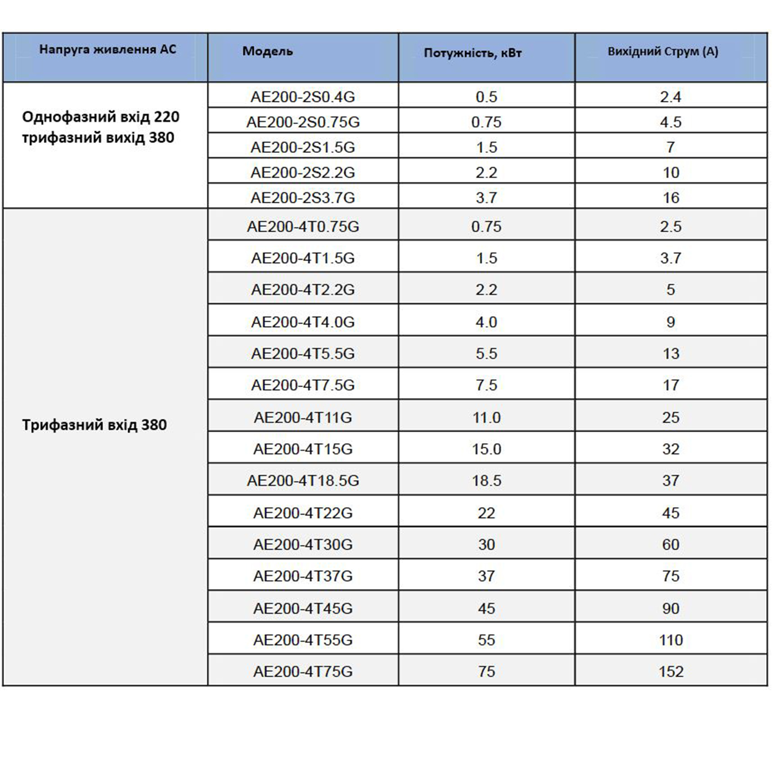 Частотний перетворювач AE200 380В 3 фази векторний 2.2KW
