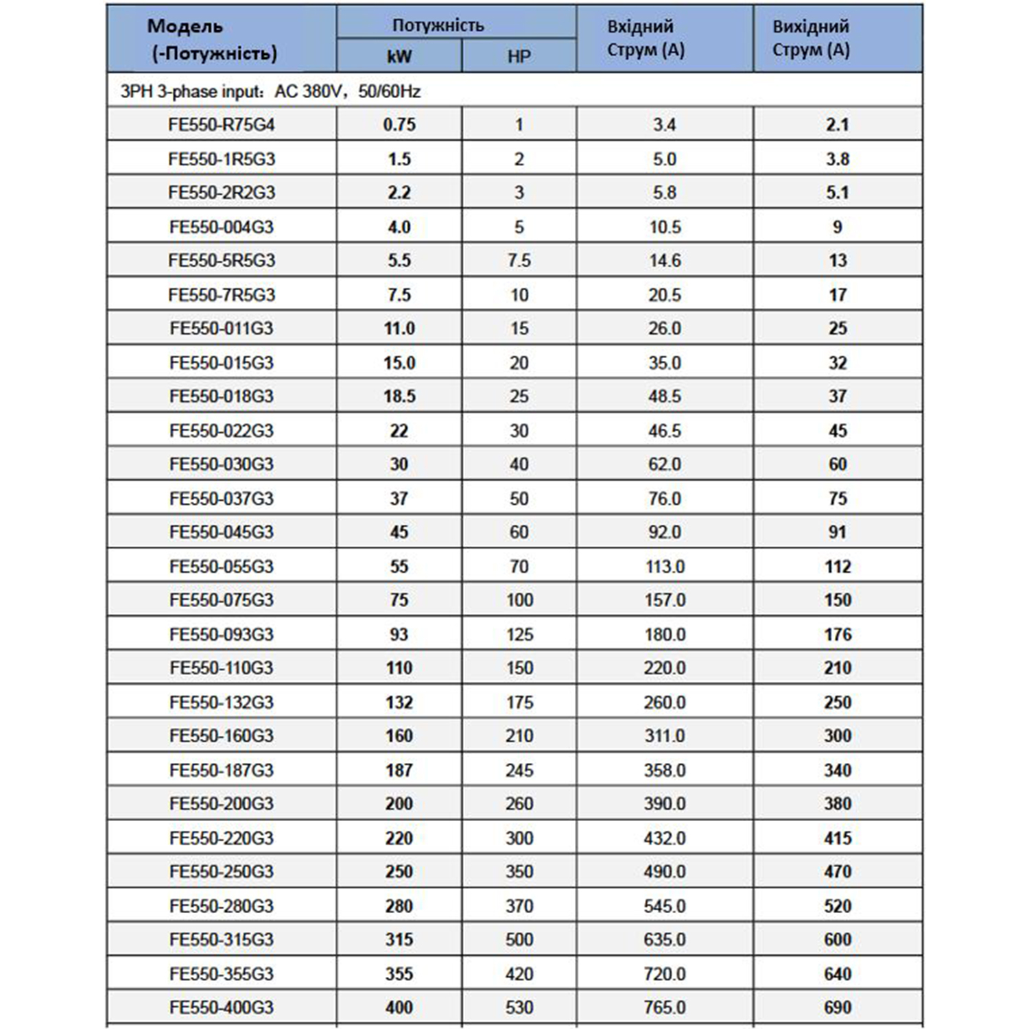 Частотний перетворювач FE550 380В 3 фази векторний 7,5KW