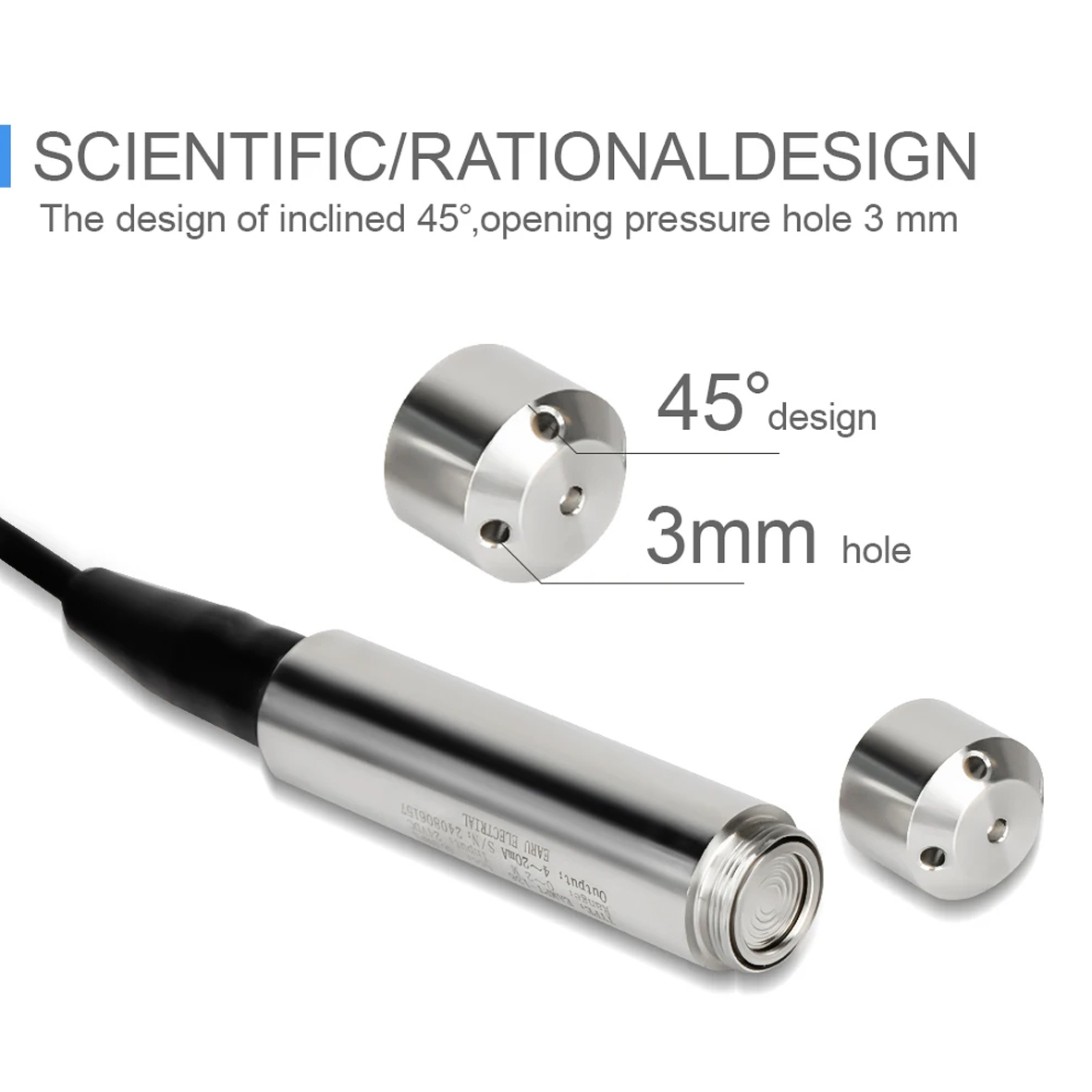 Високоточний датчик рівня призначений для точного контроля рівня рідини в будь яких резервуарах та ємністях. Принцип роботи датчика – вимірювання тиску за допомогою високоточної мембрани і перетворення цих результатів за допомогою контролера рівня і налаштованих коефіцієнтів переводу у показники рівня рідини, об’єму, масу тощо. Матеріал корпусу датчика – нержавіюча сталь SS304 або SS316, кабель управління захищений поліуретановою оболонкою. Датчик може працювати в сильно забруднених, агресивних, хімічних рідинах тощо. Нижня частина датчика має відкручуюся частину, яка дозволяє провести очищення мембрани тиску в разі необхідності. Параметри датчику рівня 0-1 метр: Точність вимірювання - 0,5%FS Інтерфейс підключення (2 дроти) - 4-20mA (струмове коло) Напруга - 12-36VDC Діапазон вимірювання рівня - 0-1 метр Довжина кабелю в поліуретановій оболонці - 5 метрів Матеріал корпусу - нержавіюча сталь SS304 Температура рідини - -20 – 60 градусів Цельсія Розміри - діам.28мм х 135мм Вага- 0,61кг. Корисне відео