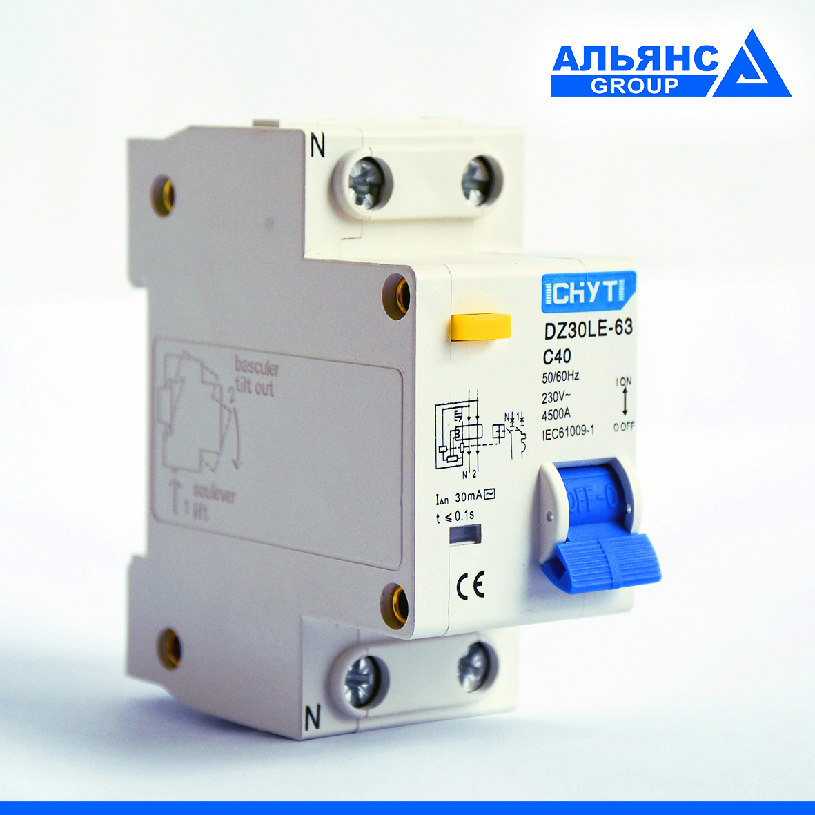Диференціальний автоматичний вимикач 40А DZ30LE-63
