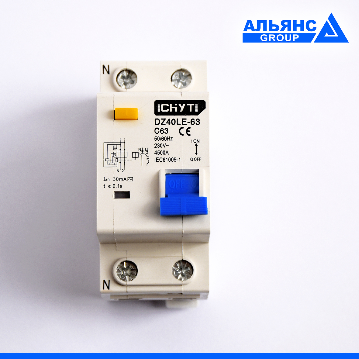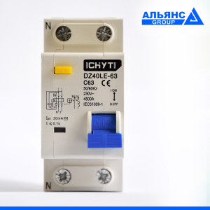Диференціальний автоматичний вимикач 63А DZ30LE-63