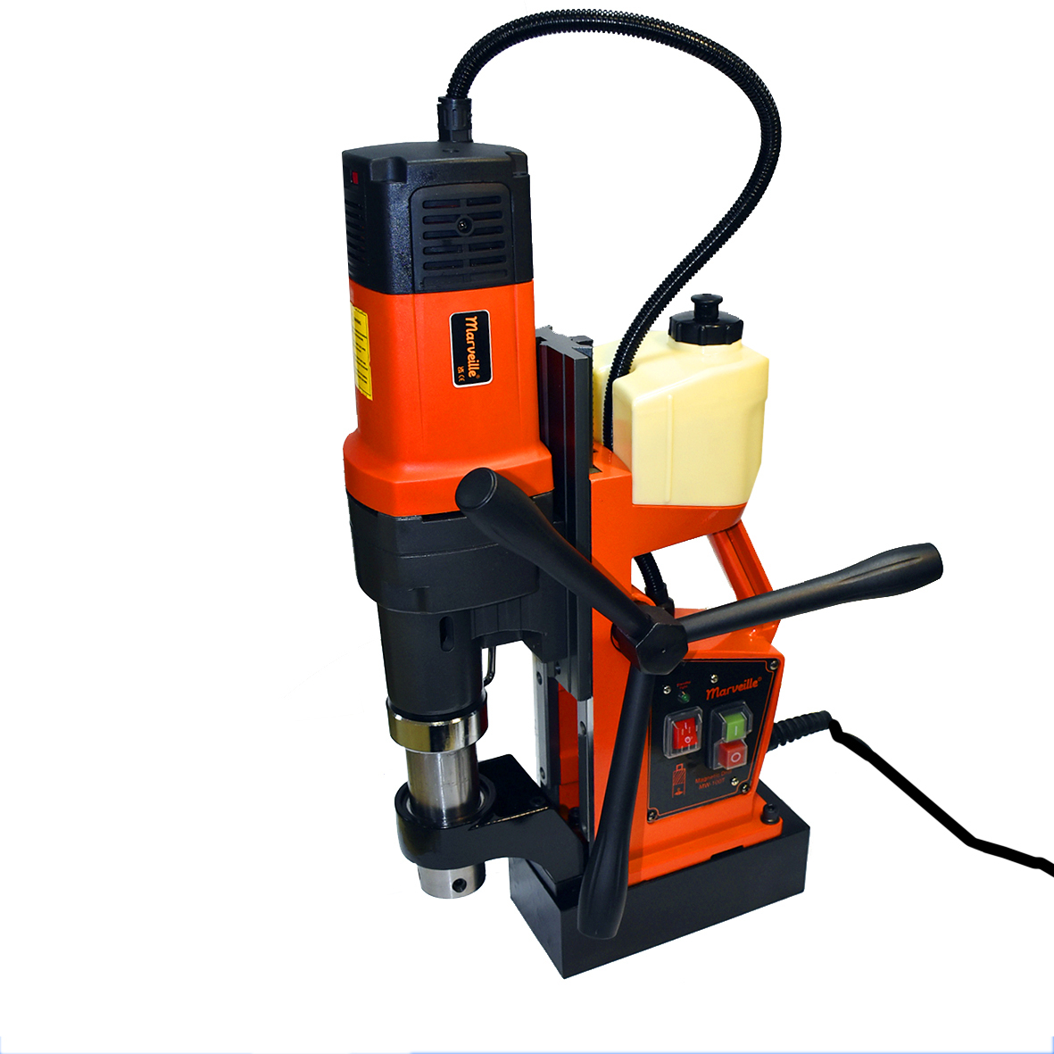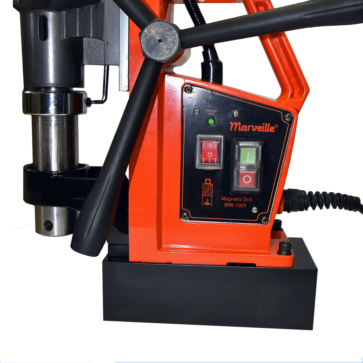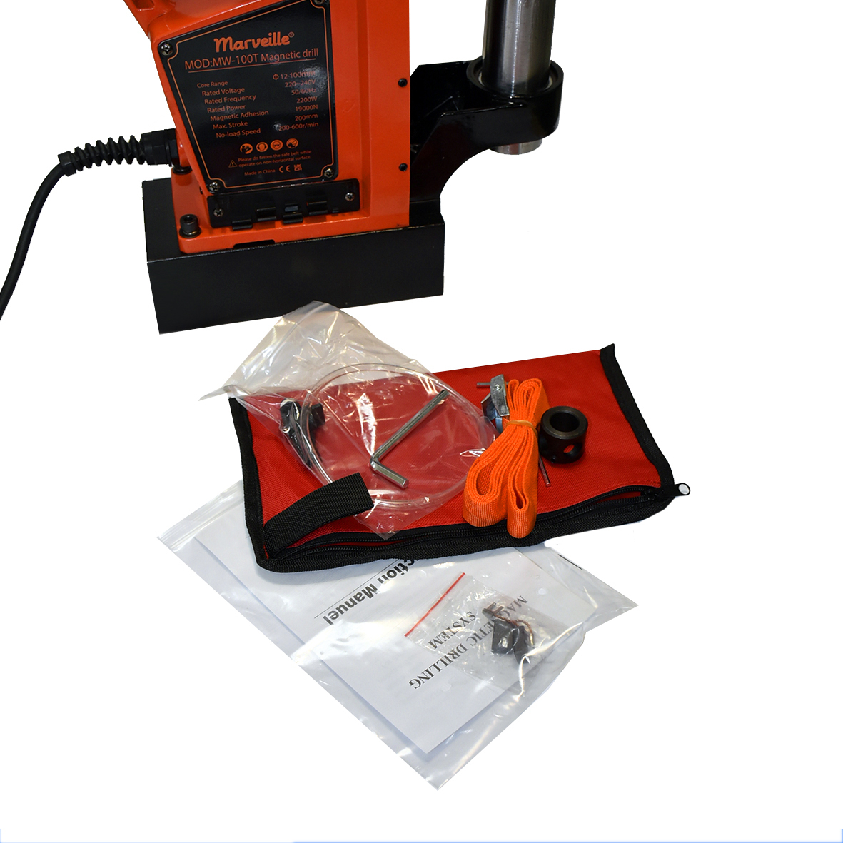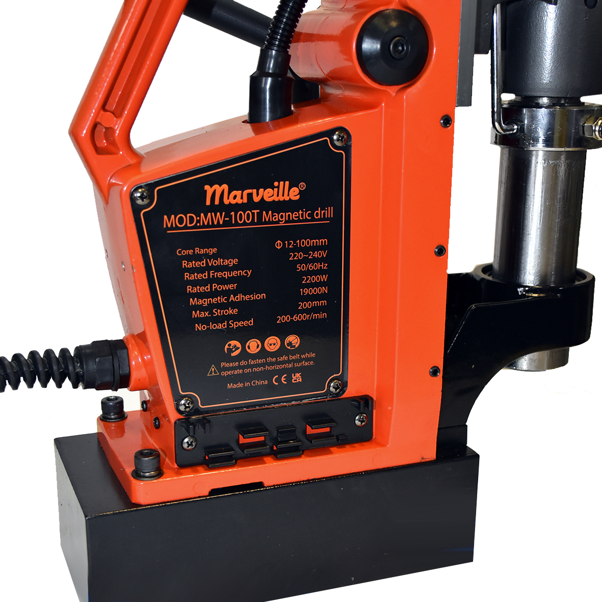 Макс. діам. кільцевої фрези: 100 мм Номінальна напруга: 220-240В Номінальна частота: 50-60 Гц Магнітна адгезія: 19000 Н Номінальна споживана потужність: 2200 Вт Швидкість холостого ходу: 200-600об/хв Хід: 180 мм Хвостовик Weldon: MT3 Глибина сердечника: 100 мм з безступінчастим регулюванням швидкості