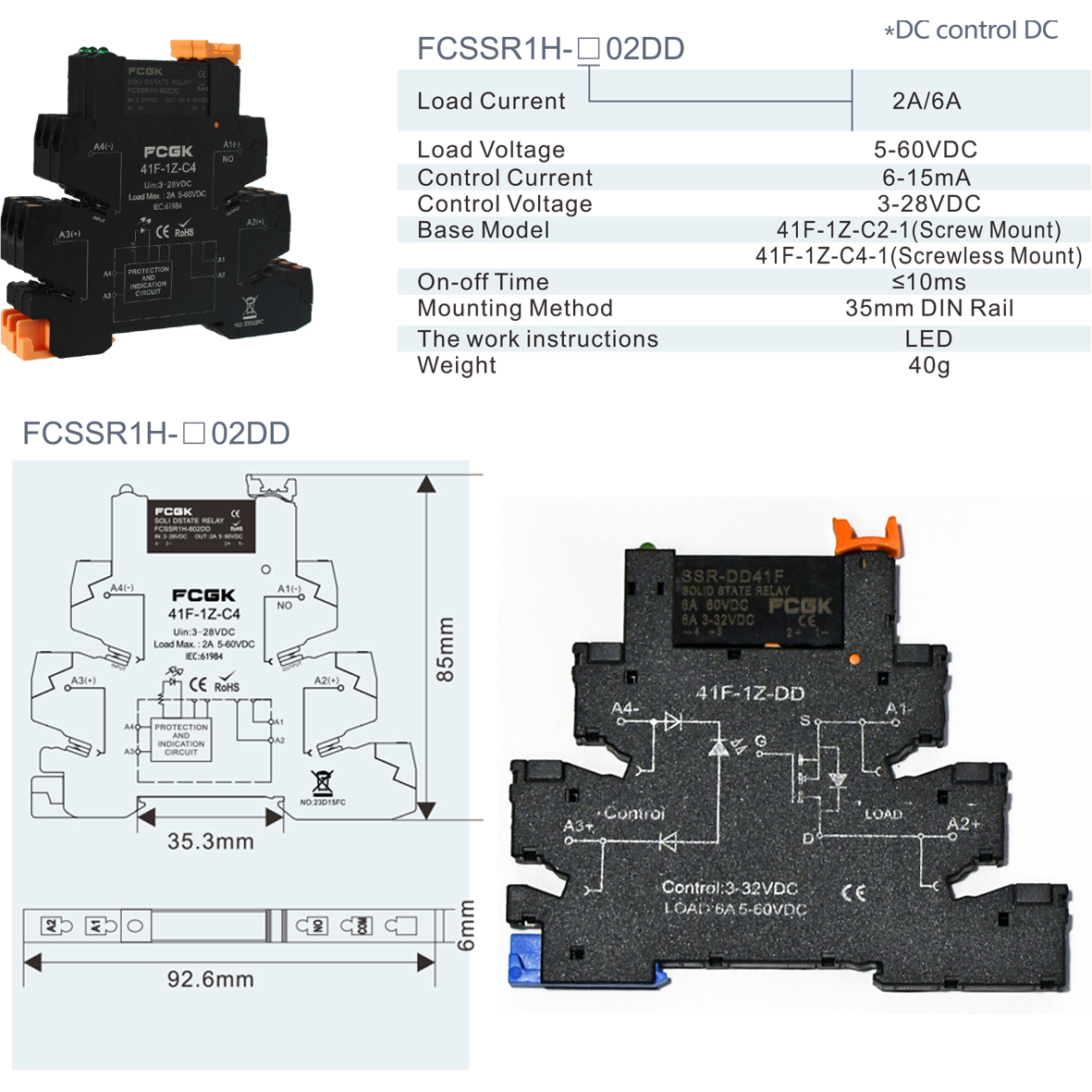 FCSSR1H-302DD (41F-1Z-C2/C4) Control (3-28VDC) Load (2A 5-60VDC)