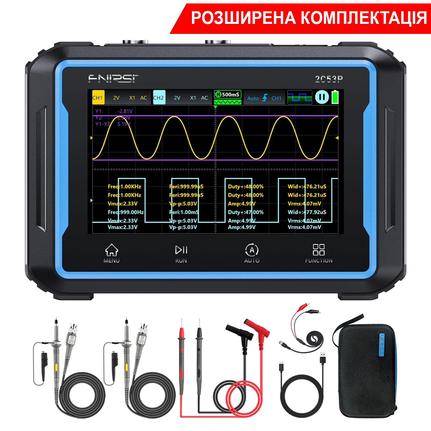 FNIRSI 2C53P, 2щупи (цифровий мультиметр / портативний осцилограф 50 МГц*2 / генератор сигналів / smart професійний тестер), розширена комплектація
