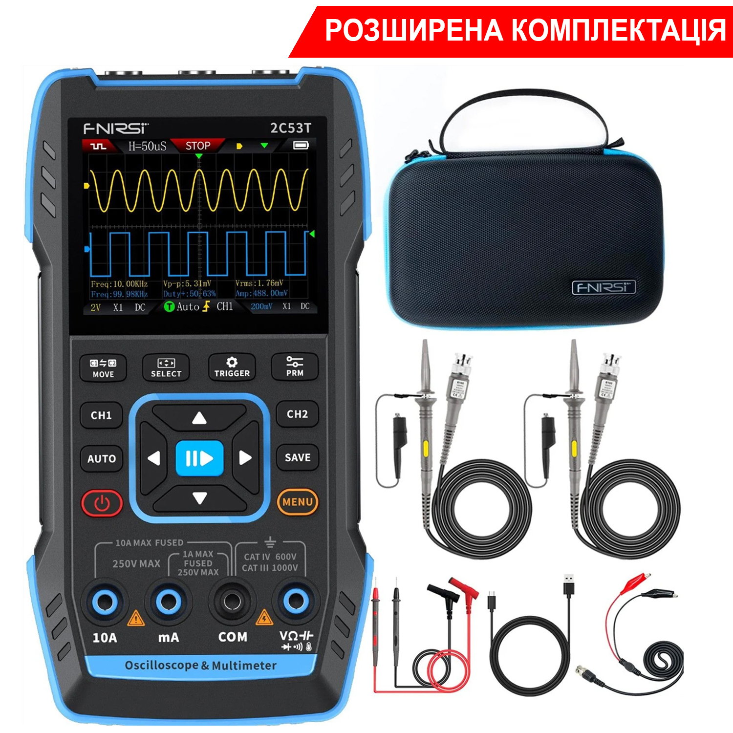 FNIRSI 2C53T, 2щупи (цифровий мультиметр / портативний осцилограф 50 МГц*2 / генератор сигналів / 9999 Count Smart професійний тестер), розширена комплектація