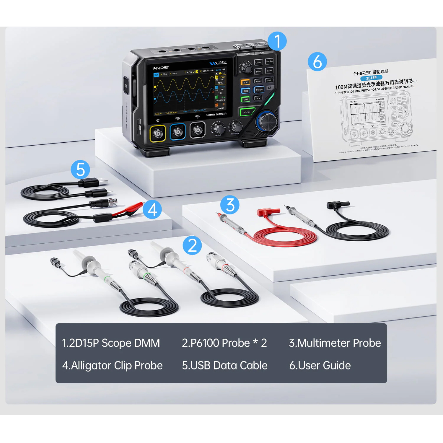 FNIRSI 2D15P, 2щупи (цифровий мультиметр / портативний осцилограф 100 МГц*2 / генератор сигналів / smart професійний тестер), розширена комплектація
