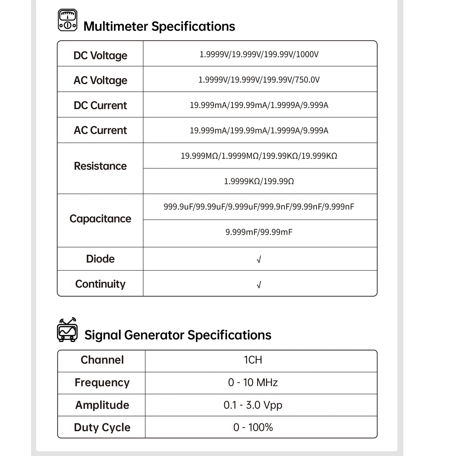 ◉ 3-в-1: Осцилограф · Мультиметр · Генератор сигналів