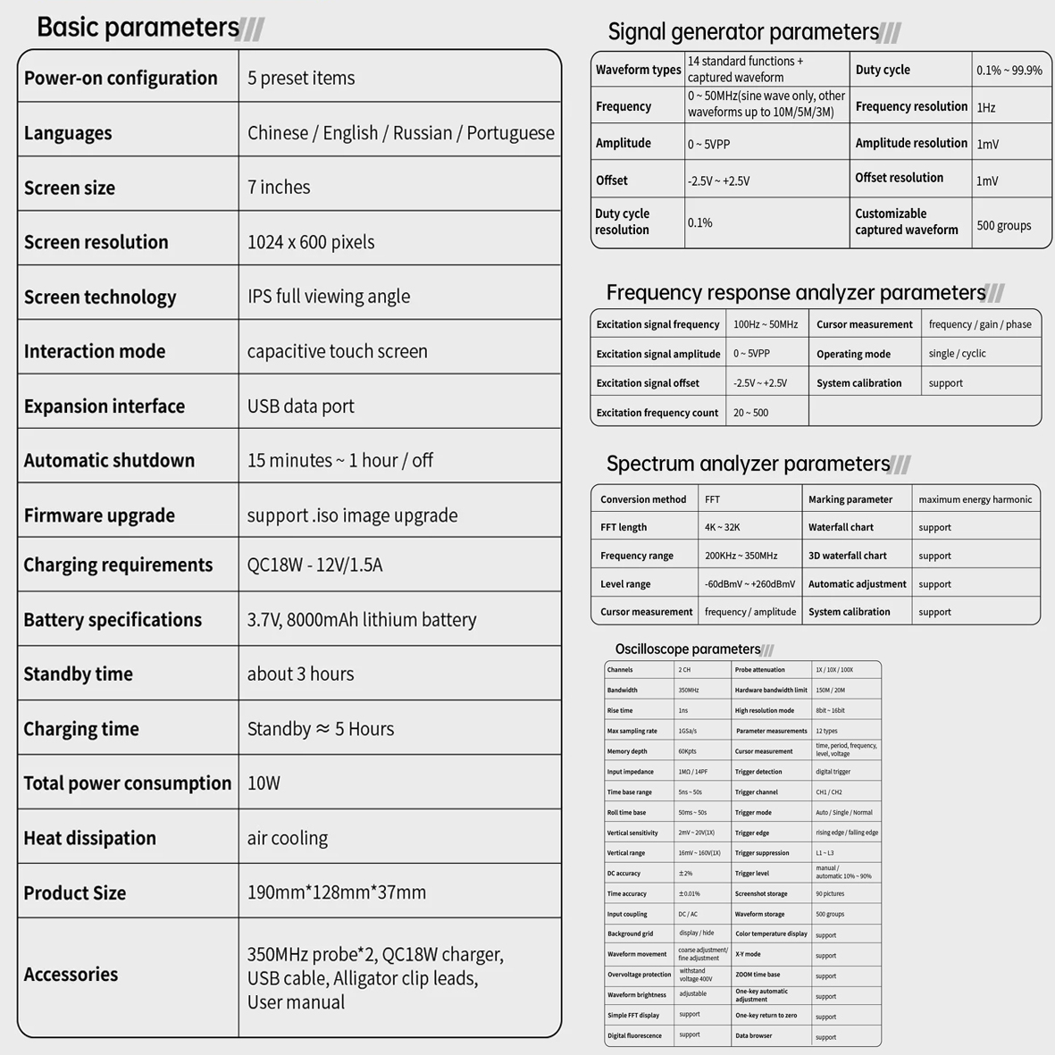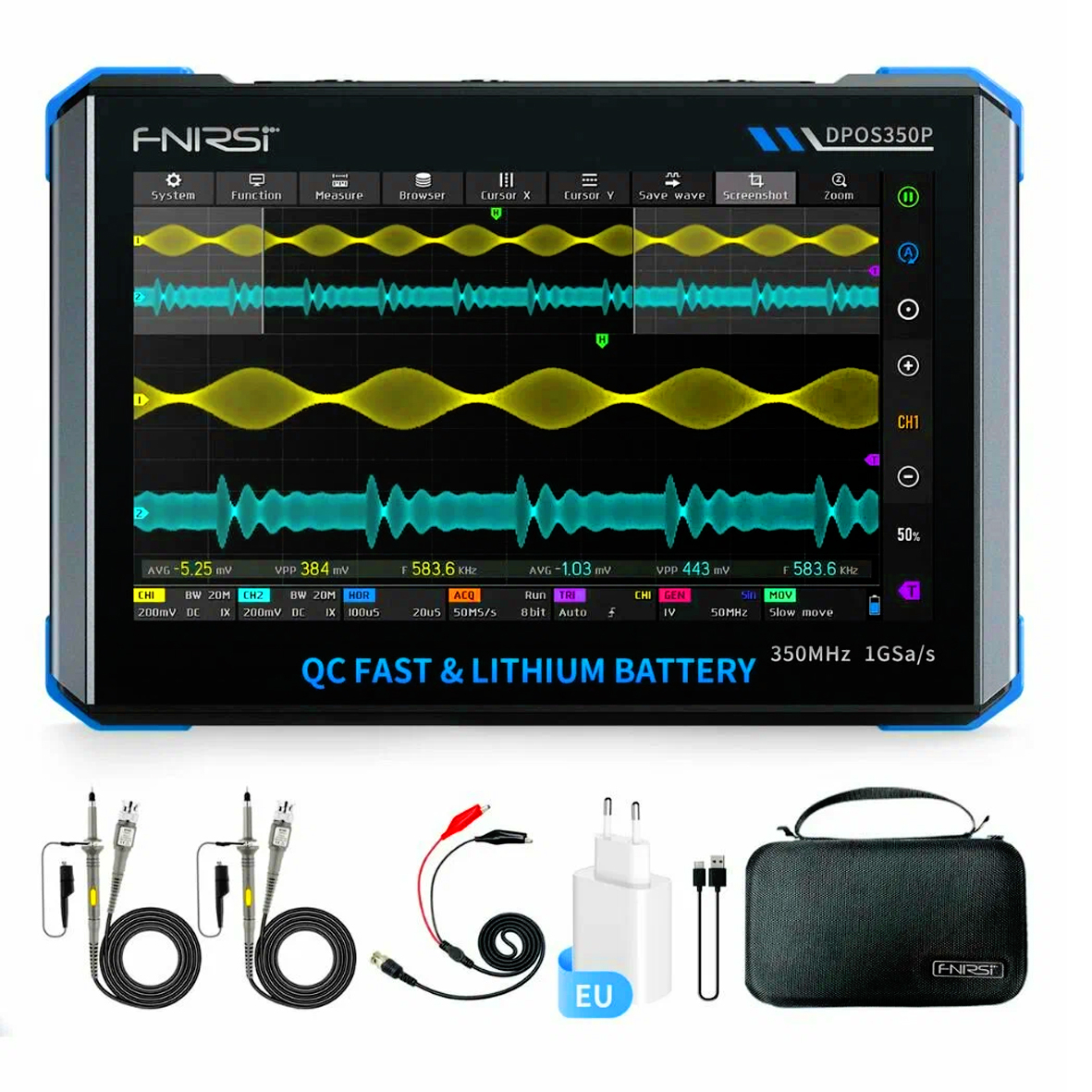 FNIRSI DPOS350P 4-в-1, 2 щупи, 350MHz*2 планшетний осцилограф / генератор сигналів / аналізатор спектру / аналізатор частотної характеристики