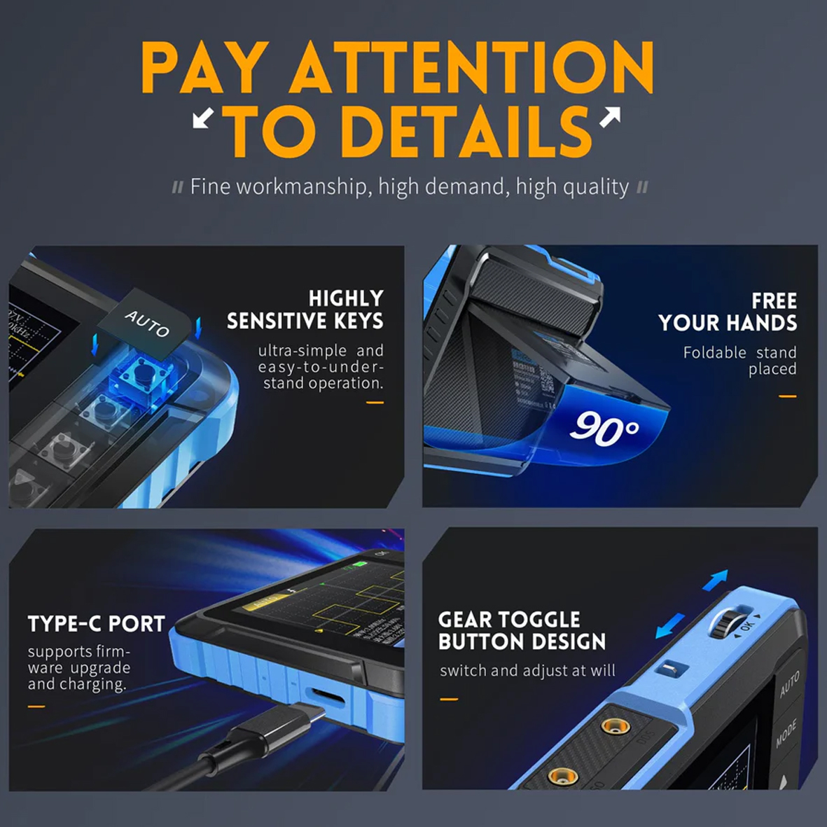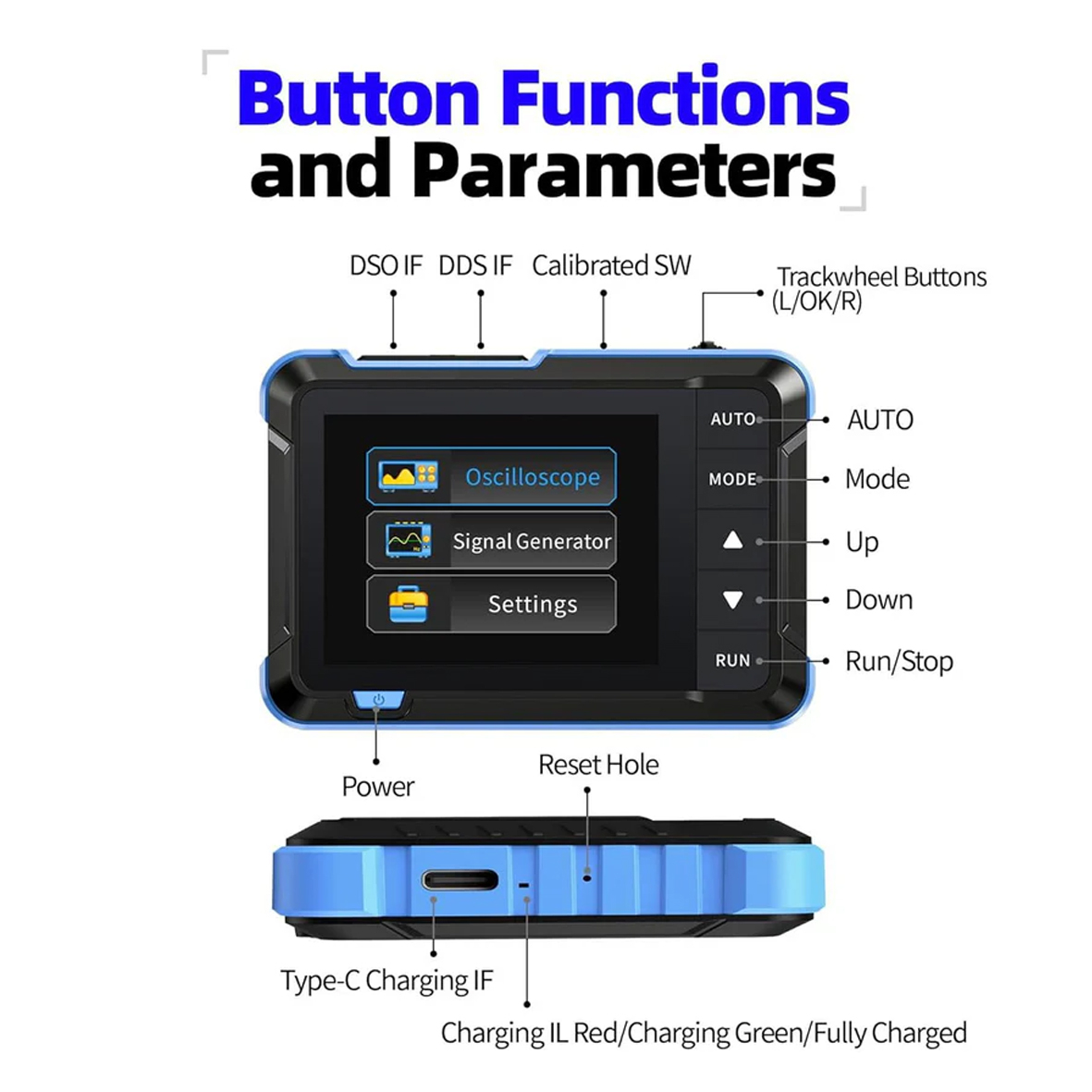 - Портативний 2,8-дюймовий TFT-осцилограф для початківців та аматорів