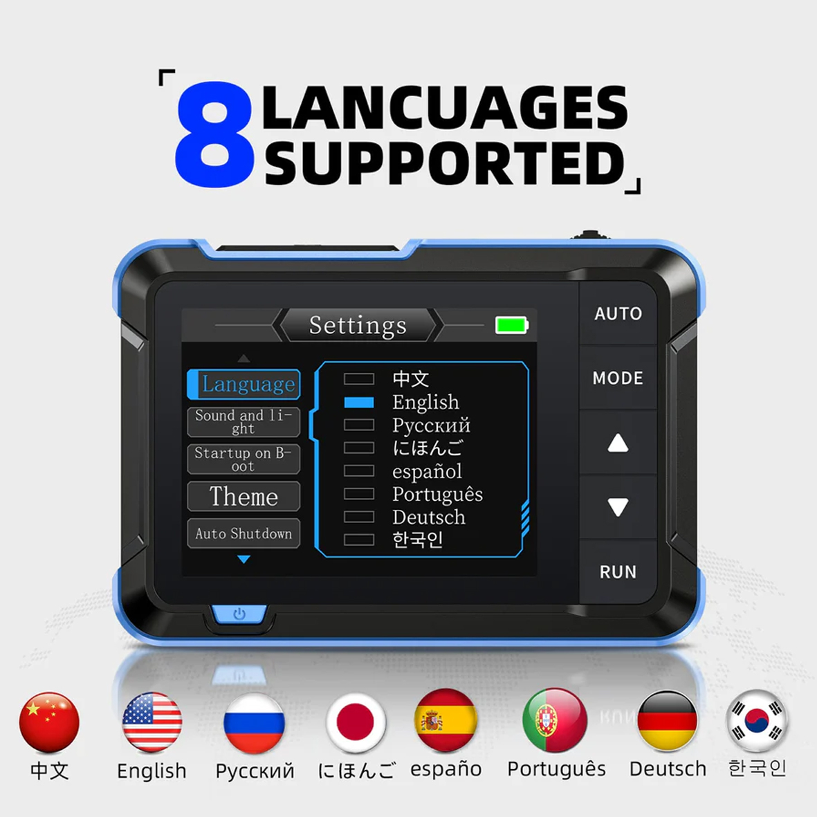 - 8 різних мов: китайська, англійська, російська, японська, іспанська, португальська, німецька, корейська.