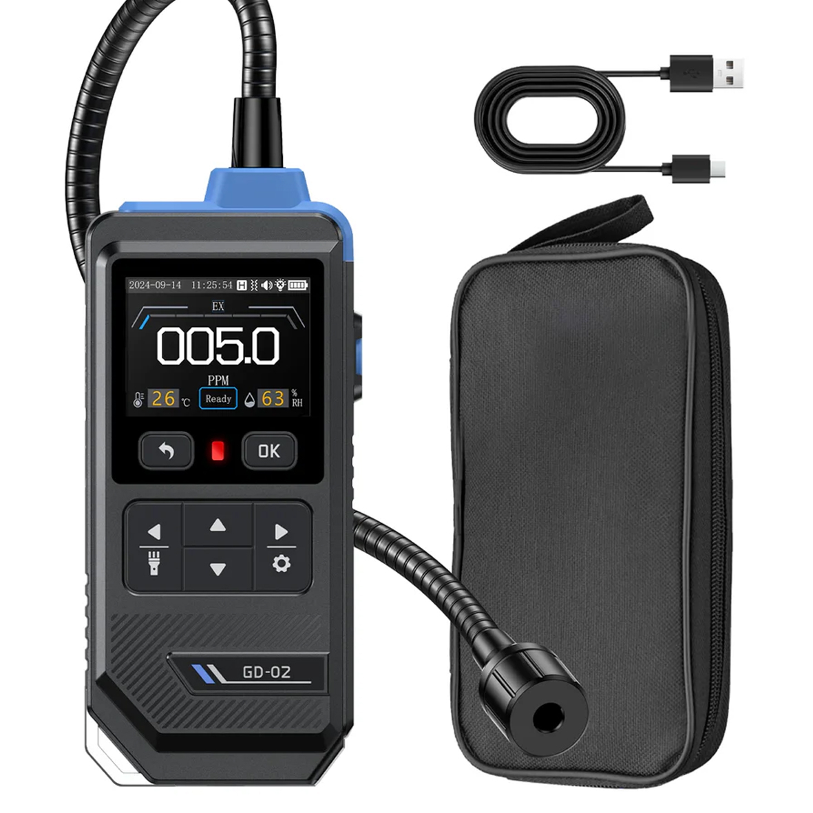 GD-02 — це надійний кольоровий газовий детектор метану, який також відстежує температуру та вологість. Він забезпечує швидкі та точні показники, швидке запуск, швидке обнулення та стійкий до низьких температур, отруєнь та перешкод. Міцний та точний, він зберігає свою працездатність понад 3 роки.