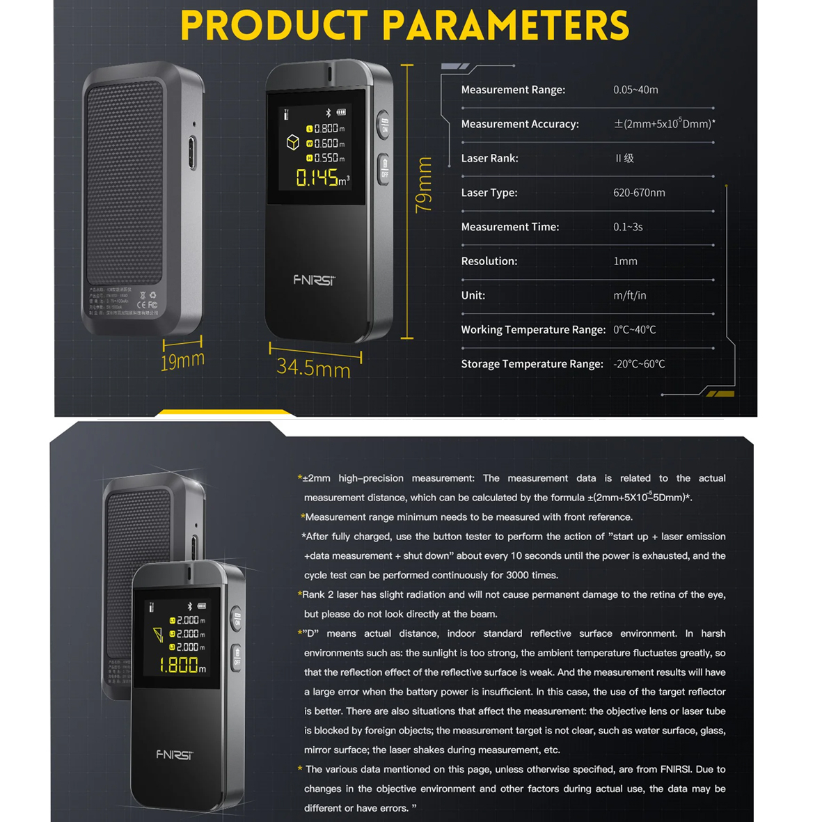 Лазерний далекомір FNIRSI IR40 використовує прецизійну лазерну технологію для забезпечення швидких, простих і точних вимірювань кожного разу, коли ви його використовуєте.