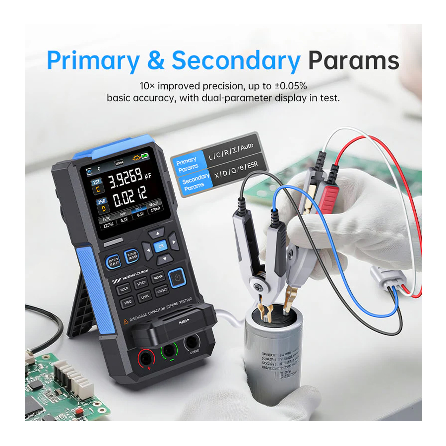 ◉ Двопараметричний дисплей: L/C/R/Z з X/D/Q/θ/ESR для повного розуміння