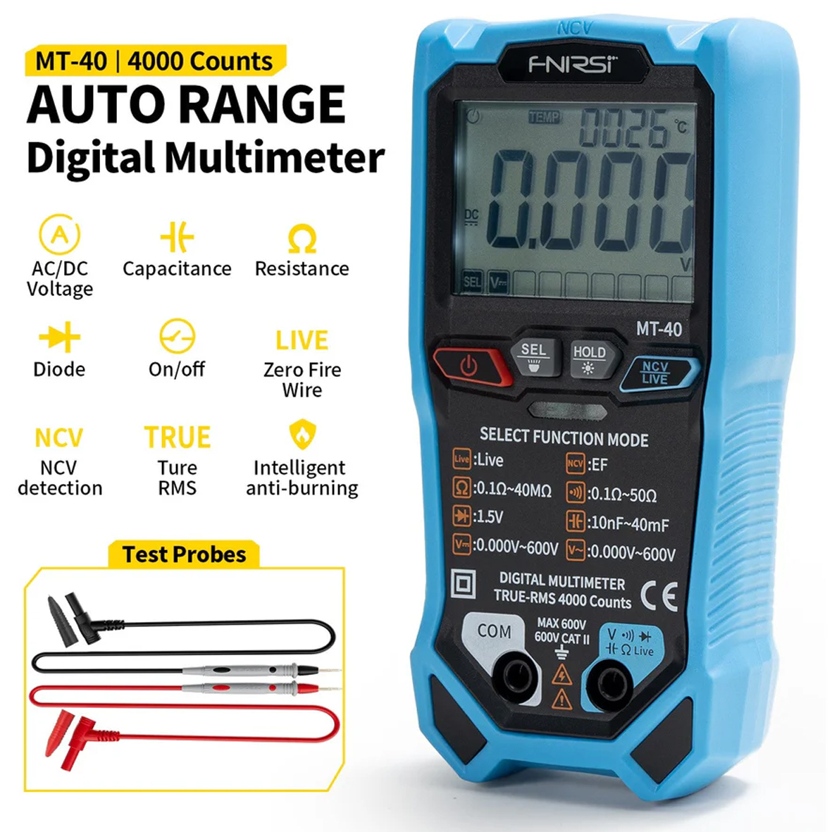 Fnirsi MT-40 інтелектуальний цифровий мультиметр, True RMS