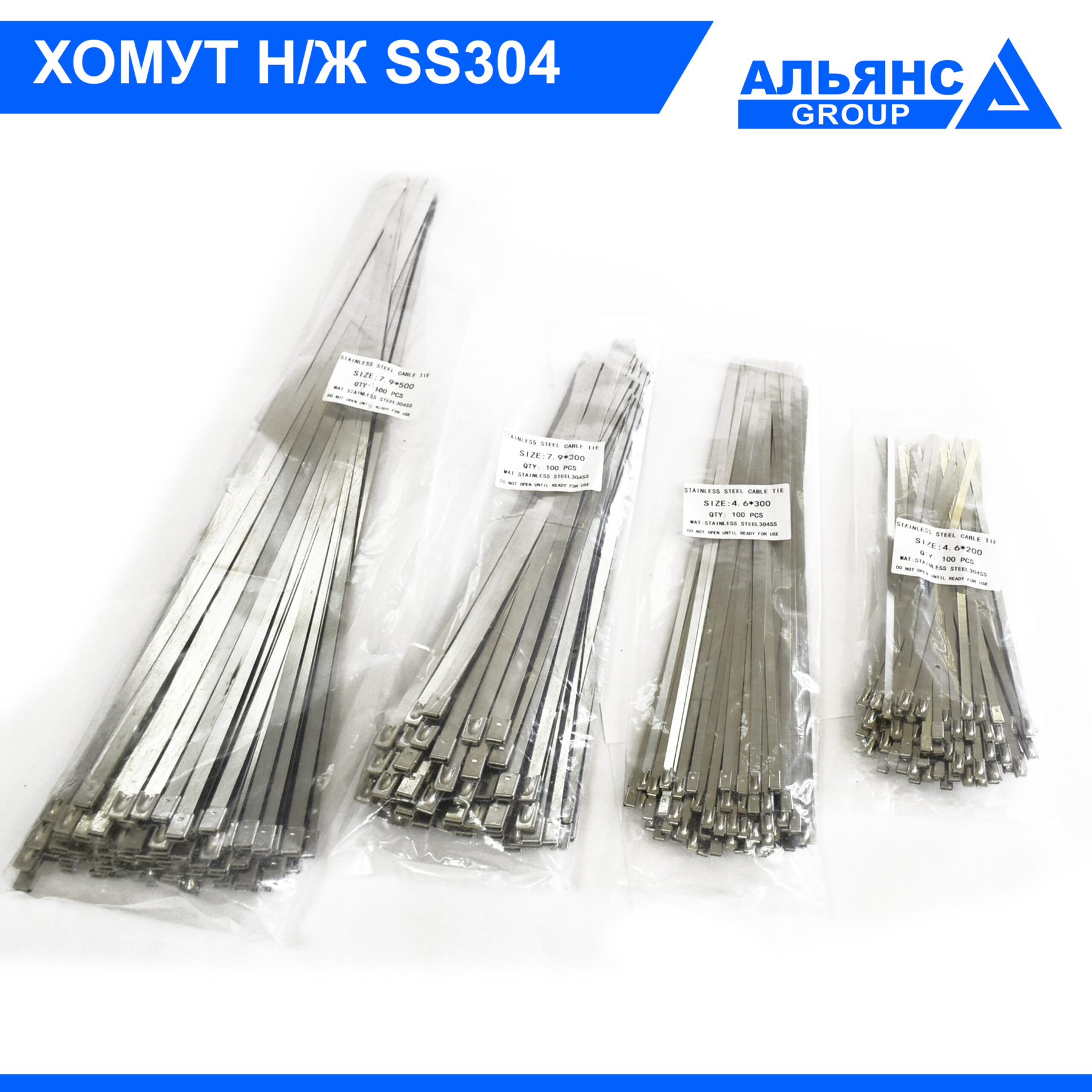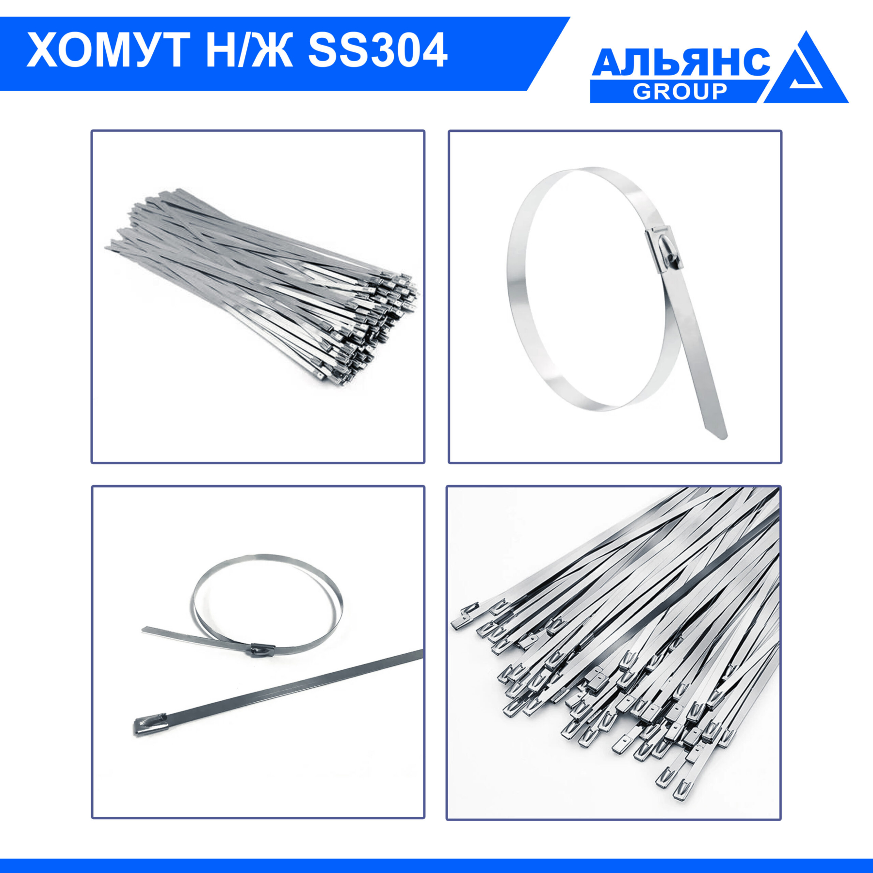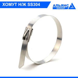 Хомут виготовляється з нержавіючої сталі AISI 304 (SS304). Призначений для застосування у важких експлуатаційних умовах, у місцях підвищеної вологості, вібрації, агресивного середовища та різких перепадів температур від -80°C до +538°C. Хомути металеві (кабельні стяжки) застосовуються для фіксації з'єднання гнучких повітроводів, проводів та кабельних джгутів. Забезпечують надійну та довговічну фіксацію навіть у масляному середовищі. Оскільки замковий механізм оснащений роликовим механізмом одностороннього ходу. Металеві стяжки витримують навантаження в 2-3 рази вище в порівнянні зі стяжками з нейлону. Мають підвищену корозійну стійкість до хімічних розчинів та солоної води.