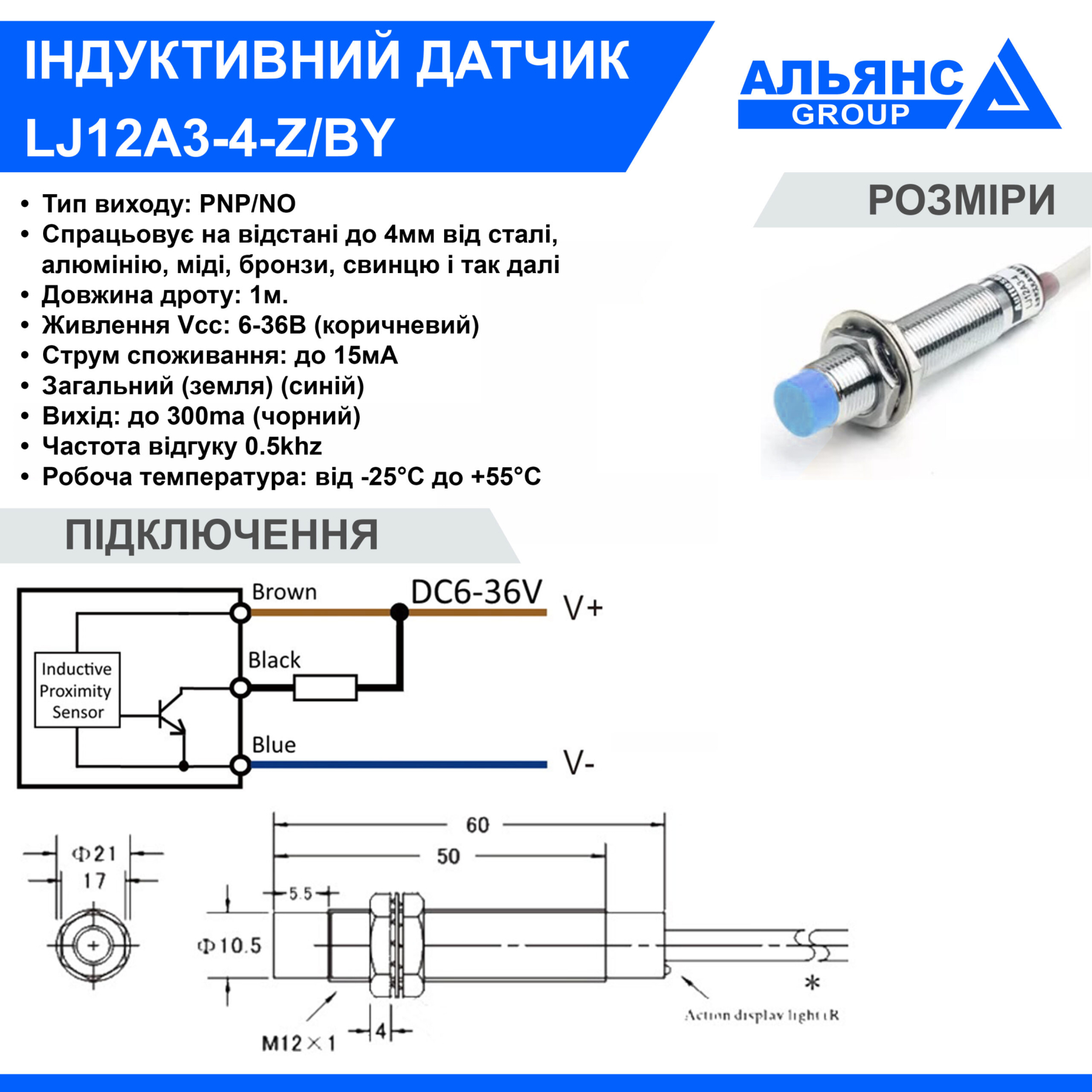 Індуктивний датчик LJ12A3-4-Z/BY DC6-36V