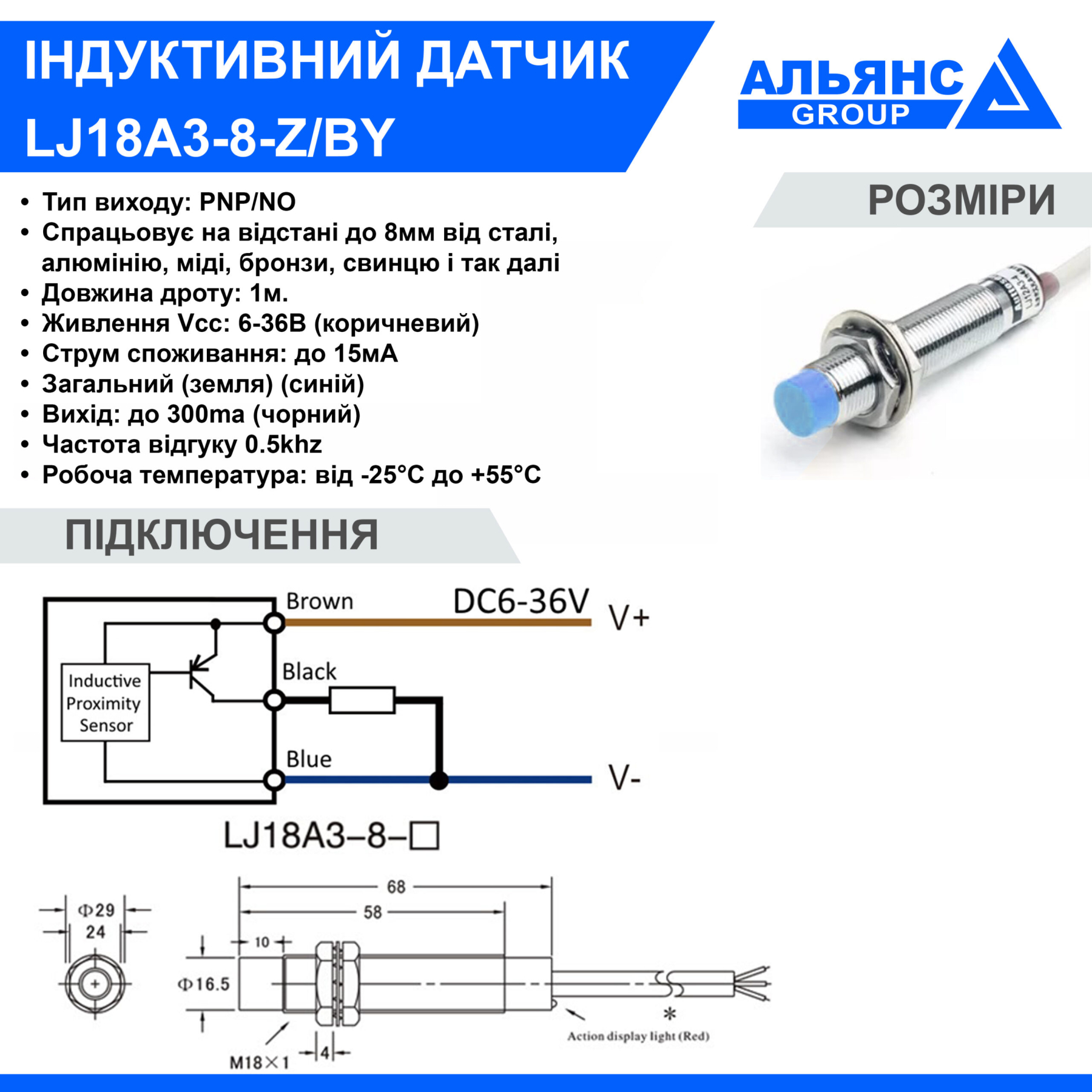 Індуктивний датчик LJ18A3-8-Z/BY DC6-36V