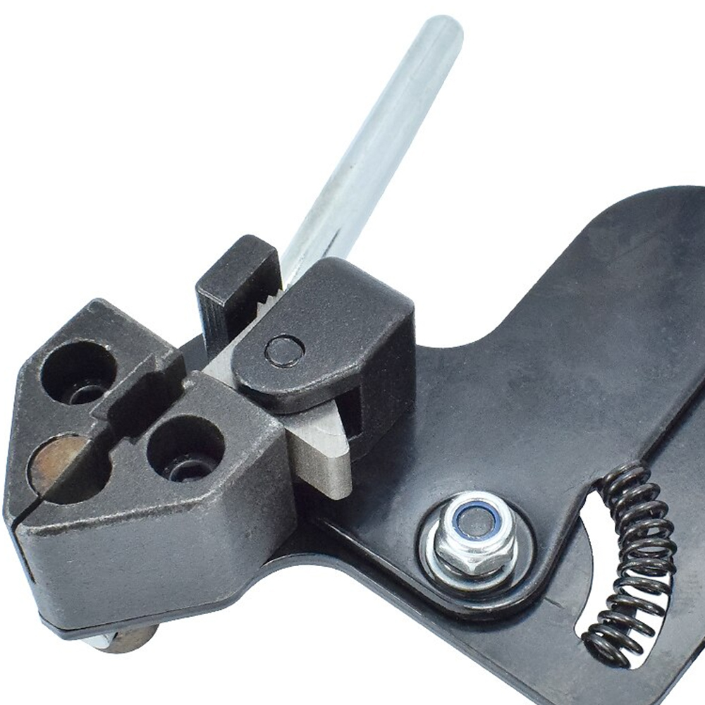 Напівавтоматичний ручний інструмент для затягування та обрізання сталевої кабельної стяжки (хомутів) на монтажі. Конструкція дозволяє швидко та легко монтувати навіть найширшу стяжку: одним зведенням ручок затягувати хомут та обрізати надлишки полотна поворотом додаткового важеля. Затягуючий механізм відрізняється високою надійністю. Поворотна пружина дозволяє швидко і безперервно робити процес затягування. Покриття рукояток забезпечує надійний хват і перешкоджає проскальзування інструменту під час роботи. Характеристики: Призначення: монтаж сталевої кабельної стяжки Max ширина стяжки: 12 мм / ≤0,3 мм Min ширина стяжки: 4,6 мм/≤0,3 мм Корисне відео