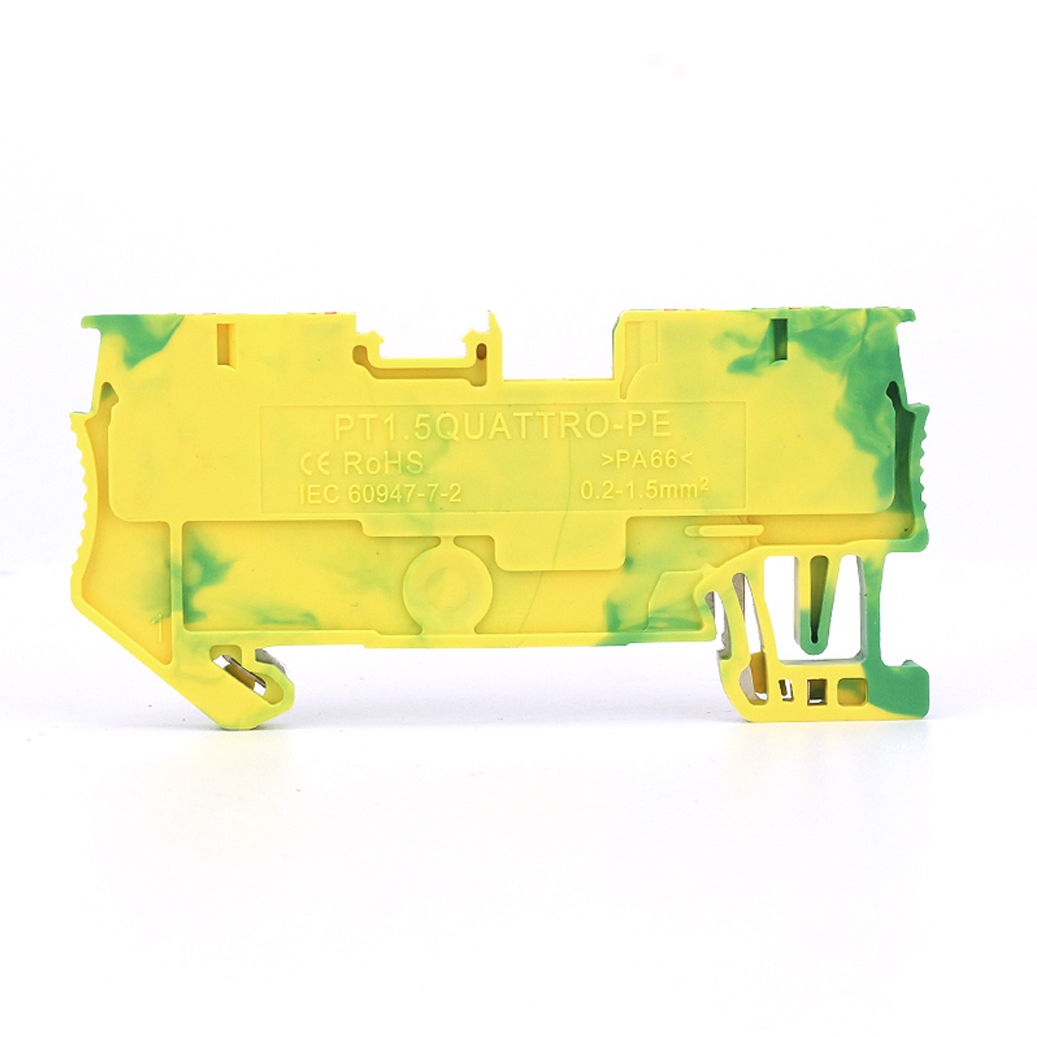 Клема заземлення PT 1.5 QUATTRO PE (1-рівнева) — призначена для підключення та розподілу захисного провідника (PE) з перерізом до 1,5 мм². Оснащена чотирма точками підключення в одному корпусі, що забезпечує компактний і зручний монтаж. Призначена для встановлення на DIN-рейку, гарантує надійний електричний контакт і відповідає вимогам систем заземлення в промислових та побутових електроустановках