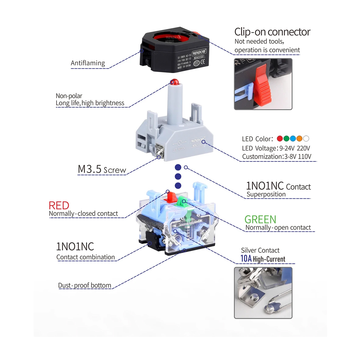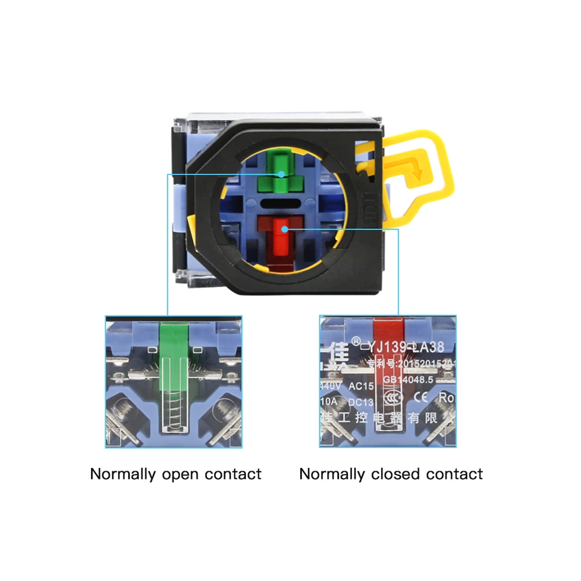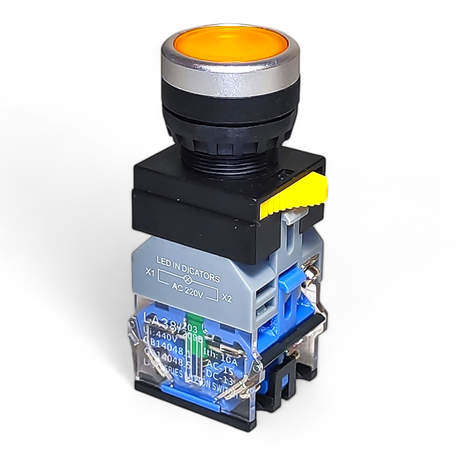 Кнопка з підсв. LA38-11D жовт. 220VAC 1NO/1NC без фікс.