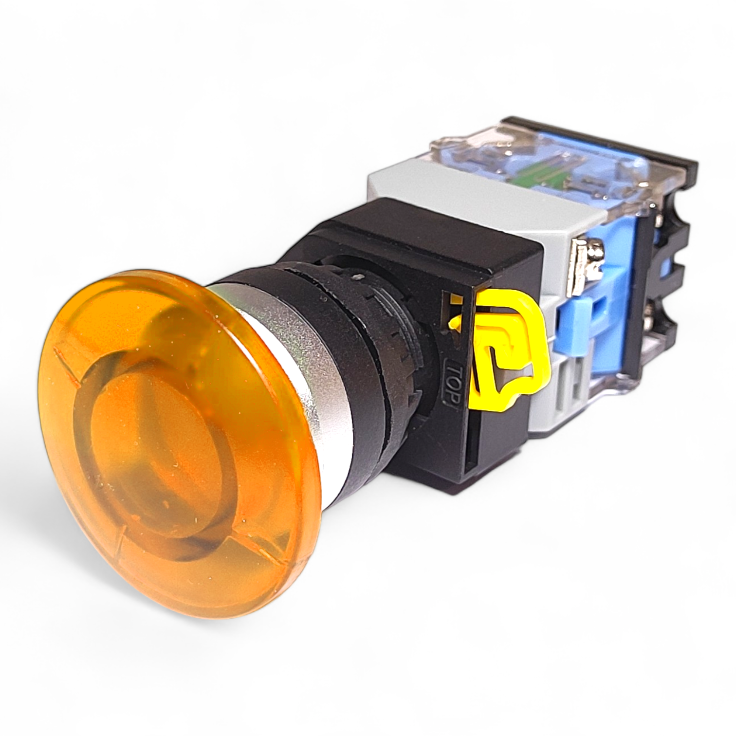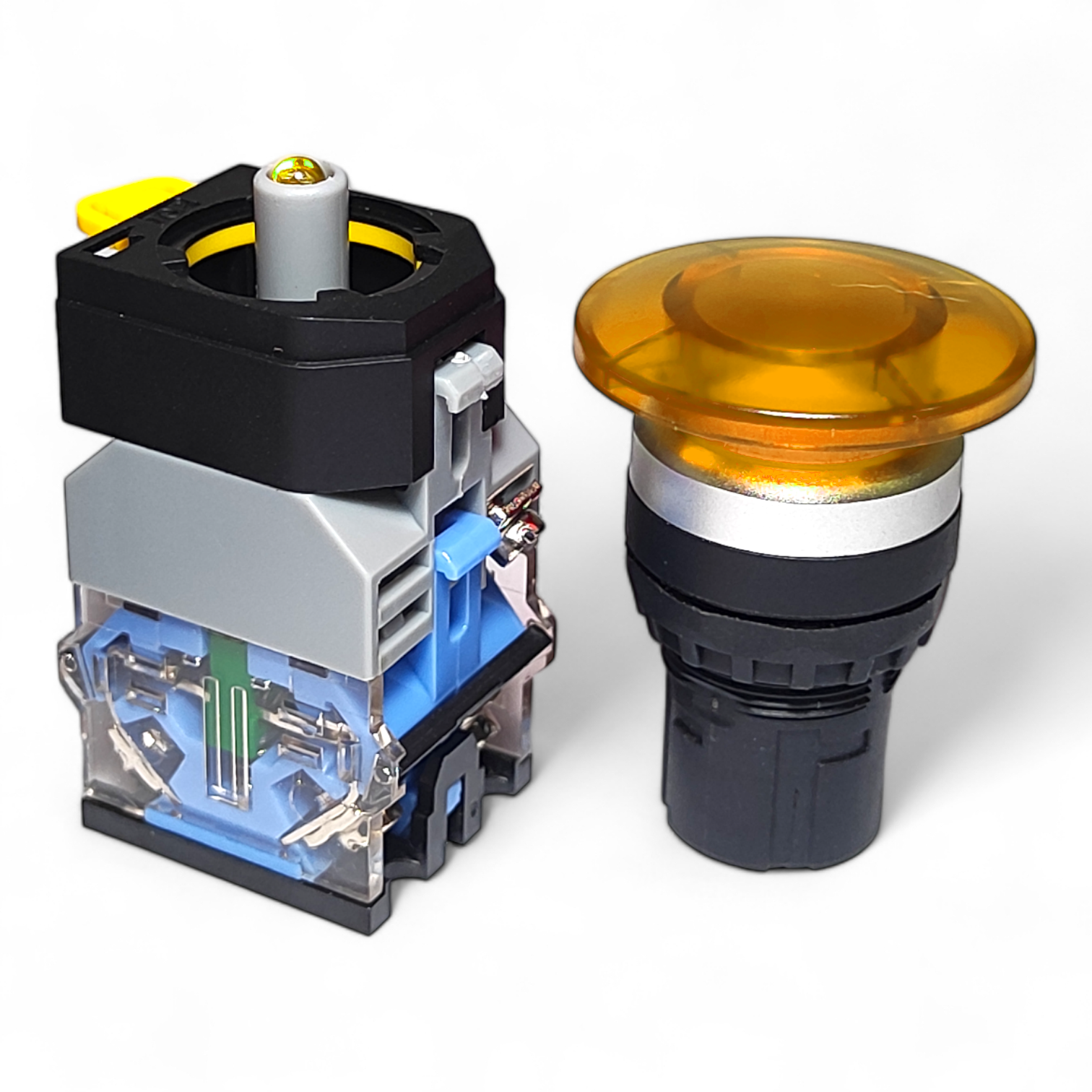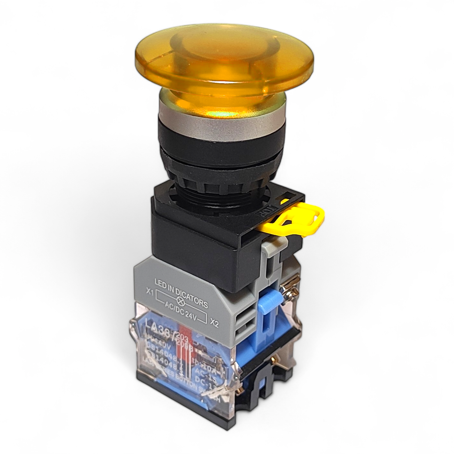 Кнопка з підсв. LA38-11DM жовт. 220VAC 1NO/1NC без фікс.