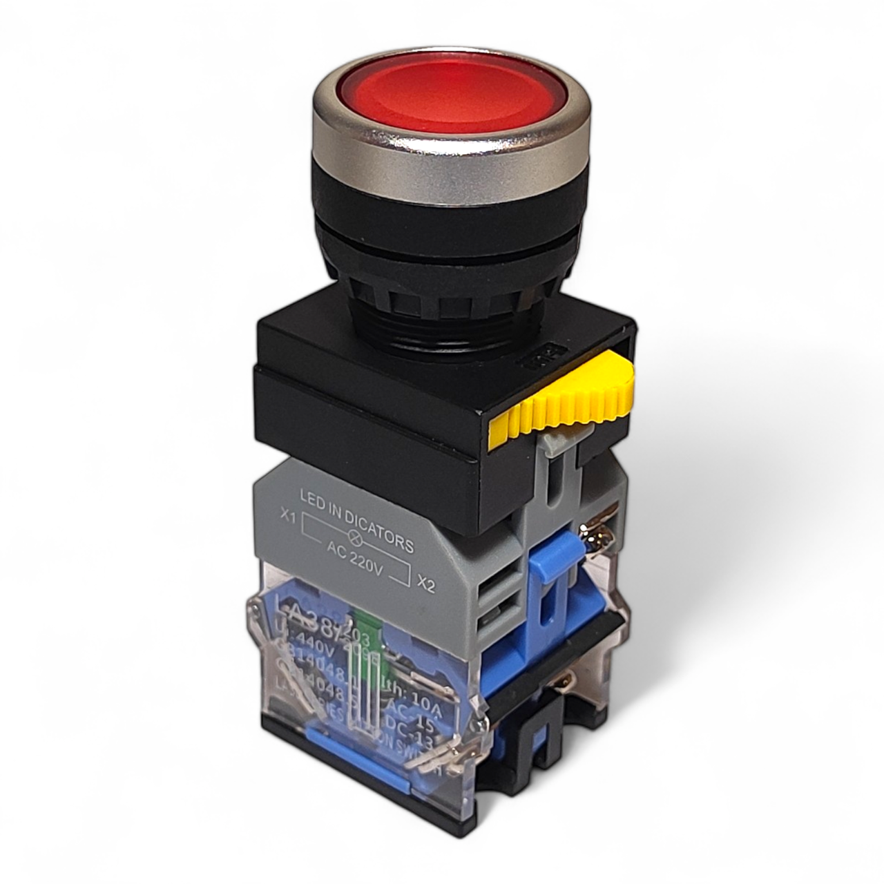 Кнопка з підсв. LA38-11D червона 220VAC 1NO/1NC без фікс.