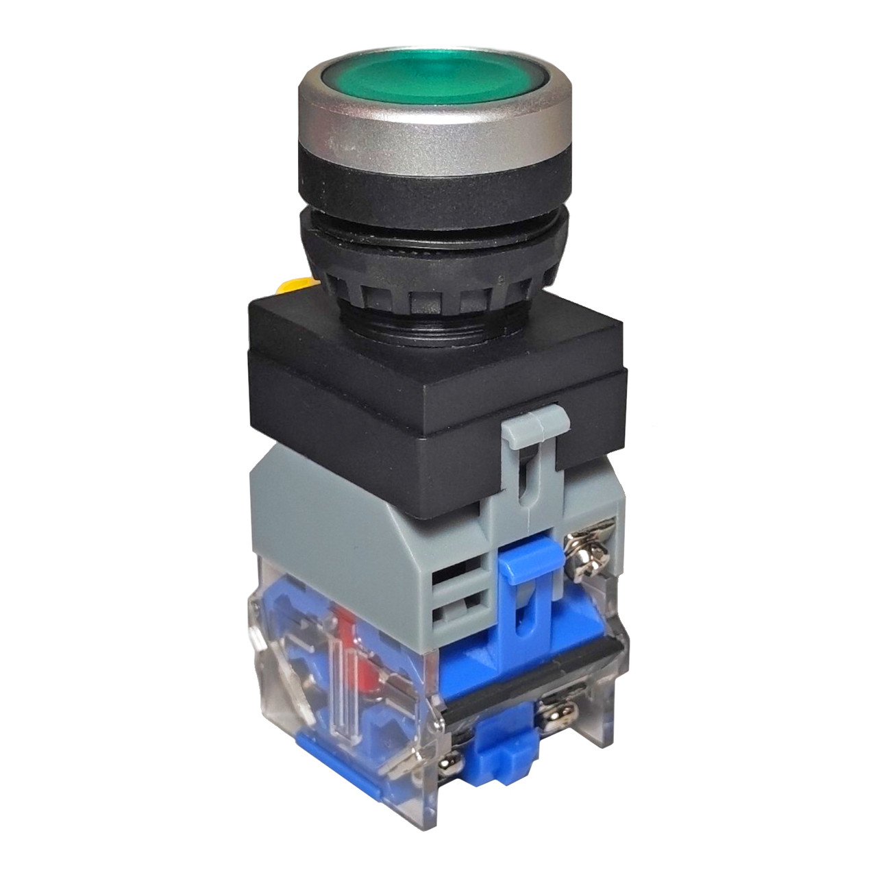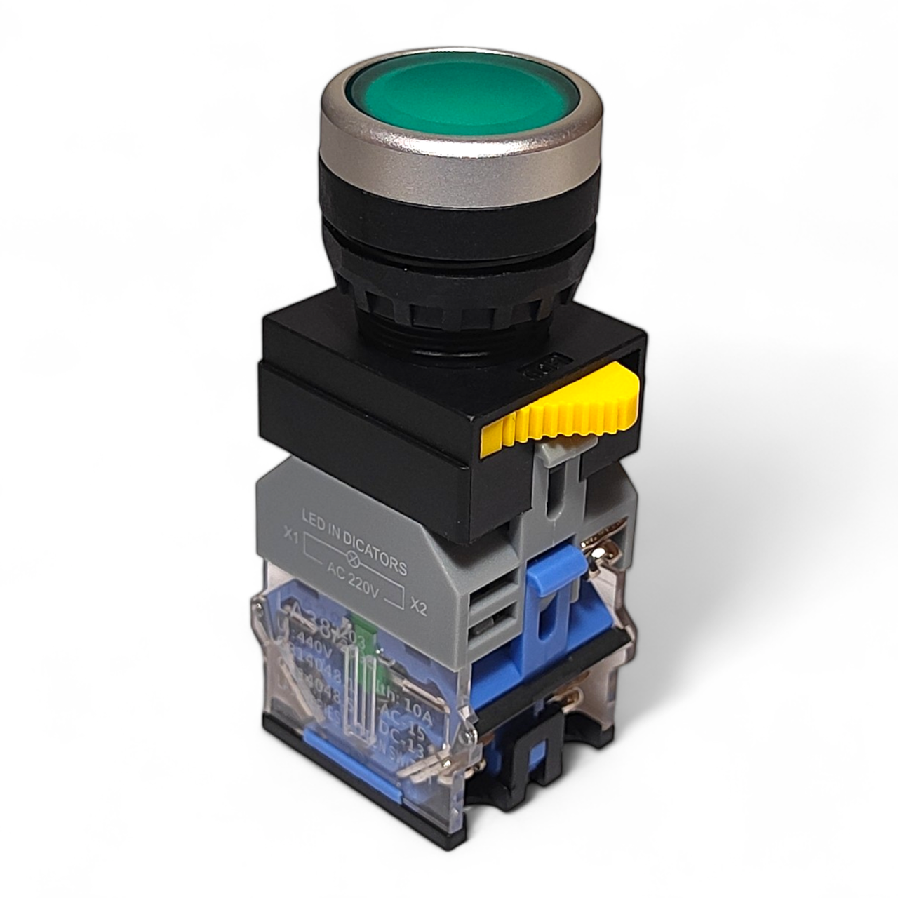 Кнопка з підсв. LA38-11DZ зел 220VAC 1NO/1NC з фіксацією