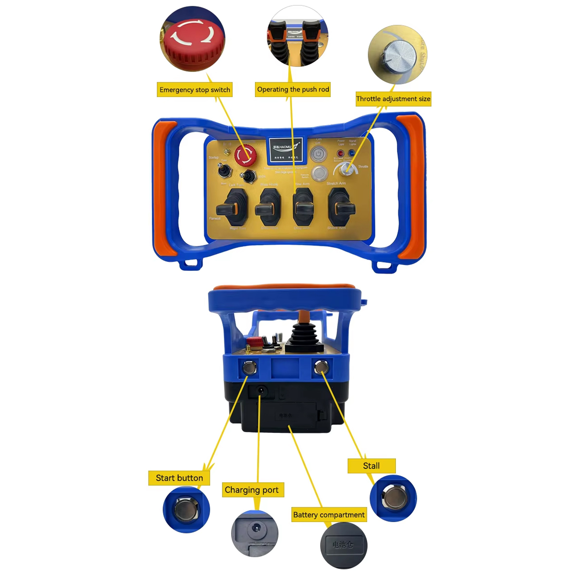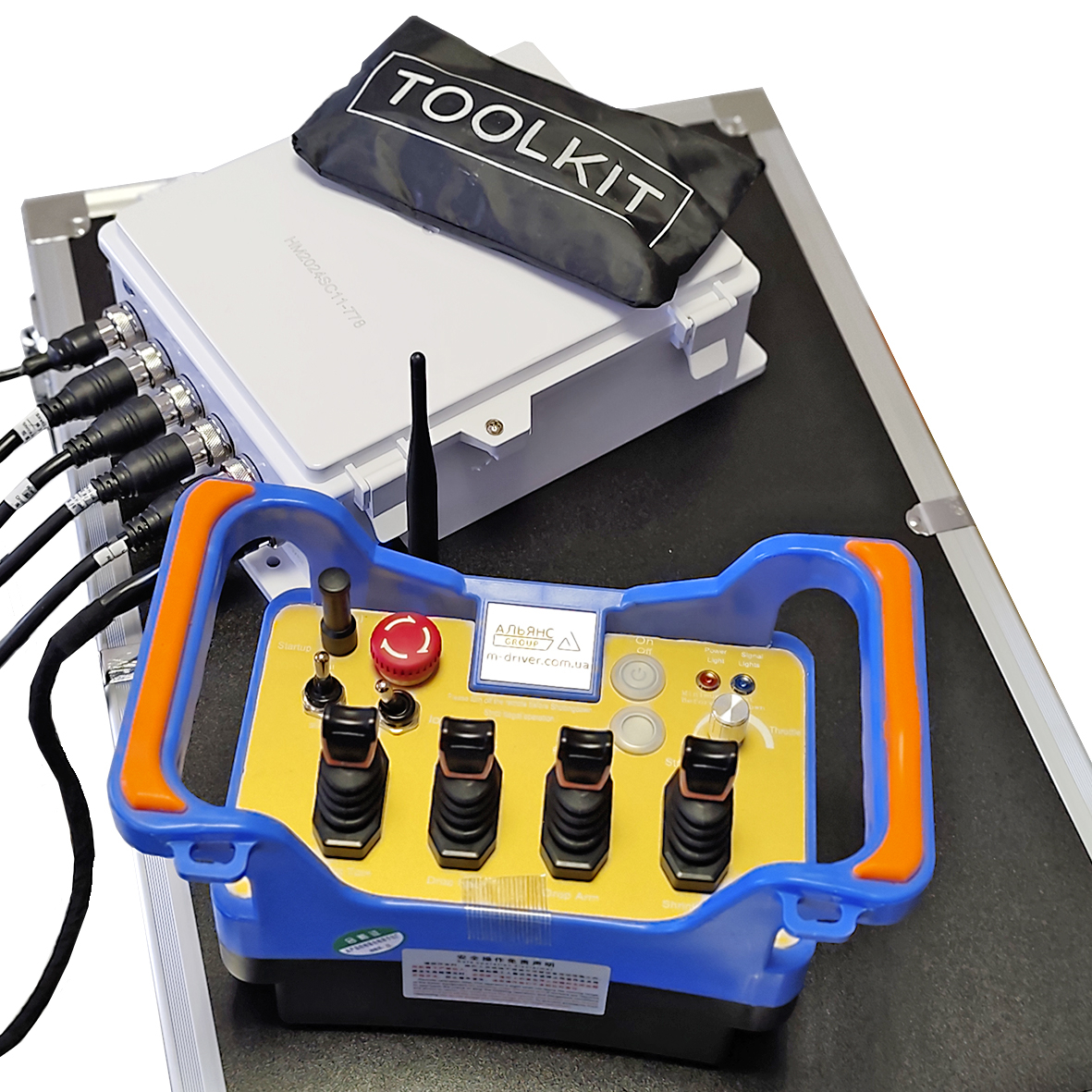 Комплект радіоуправління пропорційний з сервоприводами (4 джойстики + 1), монтажний комплект, Li-ion акумулятори з зарядкою, IP67 клас захисту, DC 12-24V живлення Корисне відео Корисне PDF