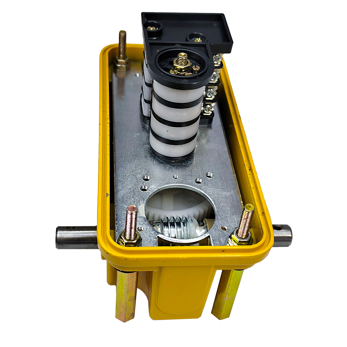 Обмежувач висоти використовується для обмеження висоти піднімання і опускання вантажів вантажопідйомними механізмами з барабанами, на які намотується трос. Дозволяє задати 4 точки висоти (або інших положень), при досягненні яких будуть замикатися контакти для управління. Наприклад, можна задати 2 точки обмеження максимальної висоти (1 точка - уповільнення швидкості, 2 точка - зупинка) та 2 точки обмеження мінімальної висоти (1 точка - уповільнення швидкості, 2 точка - зупинка). Передаточне число - 1:46 (контроль до 46 витків на барабані)