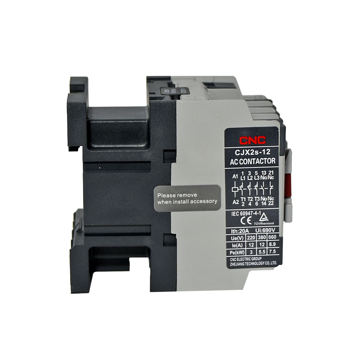 Контактор CJX2-D12 3P, котушка 220V 50/60Hz, додаткові контакти 1NO +1NC, максимальний струм AC-3 при 380/400V = 12А