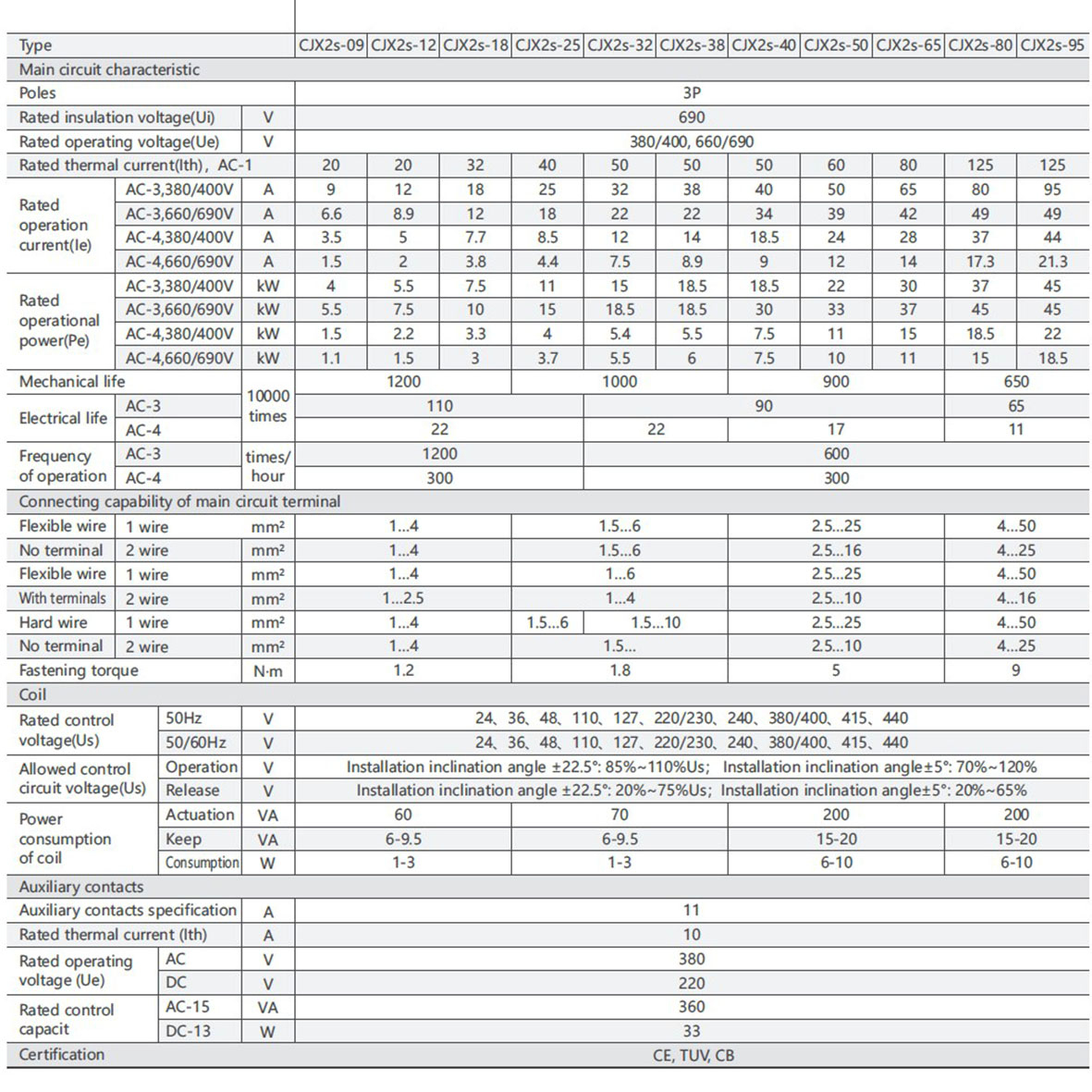 Контактор CJX2-D12 3P, котушка 220V 50/60Hz, додаткові контакти 1NO +1NC, максимальний струм AC-3 при 380/400V = 25А